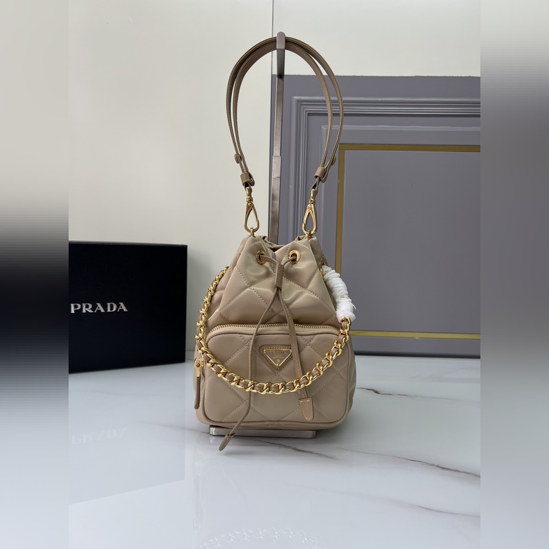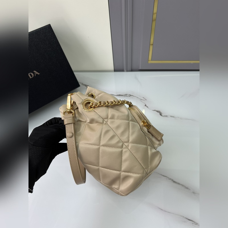 자수 버킷백 1BH038 이 다용도 레나일론 숄더백은 패딩 처리된 내부와 탑스티치 장식이 특징입니다. 정교한 수공예 다이아몬드 퀼팅 패턴은 케이스와 잘 어울리며 탈착식 철제 랜턴 2개와 소가죽으로 만든 길이 조절 가능한 긴 어깨끈이 달려 있습니다. 어깨에 메거나 손에 들거나 크로스 바디로 메기에 모두 적합합니다. 상체에는 아름다운 패턴이 새겨져 있습니다. 넉넉하고 편리하며 실용적입니다. 한정 판매이니 서둘러 구입하세요! 길이 22.5cm 높이 17.5cm 밑면 12cm
