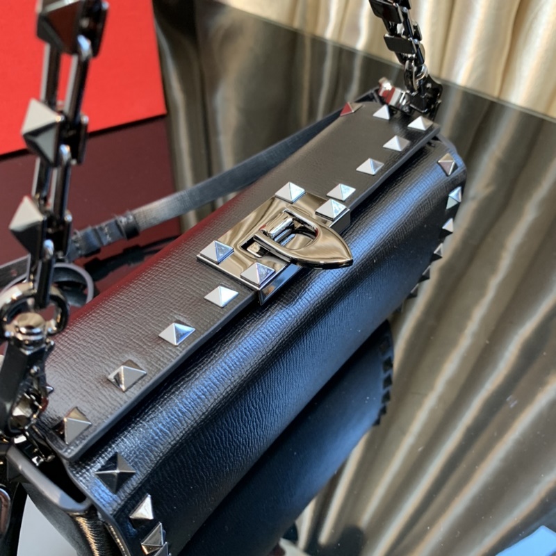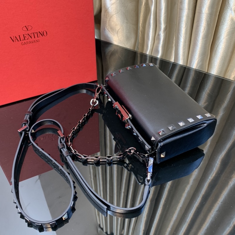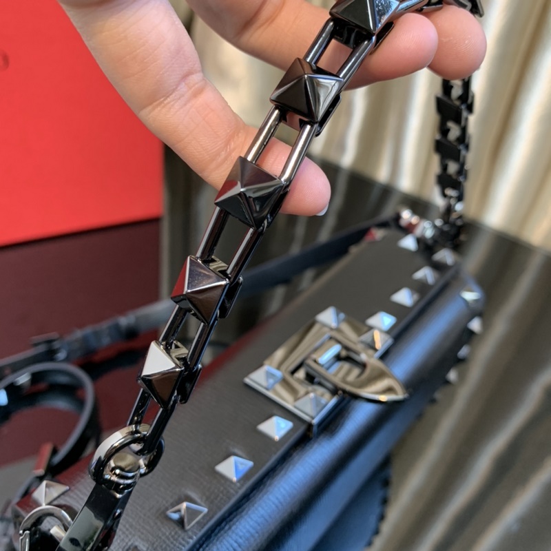 발렌티노 그레인 송아지 가죽 클러치 백 - 시그니처 스터드로 장식된 체인