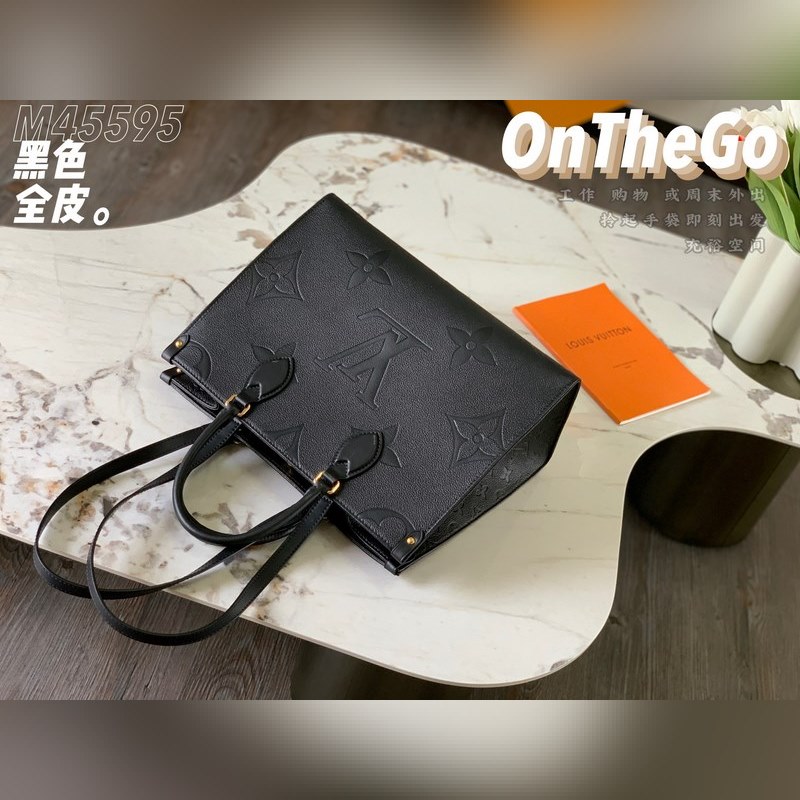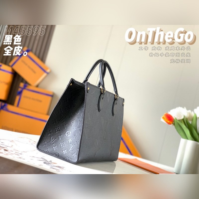 LV 모델 M45595 검정색 엠보싱 ONTHEGO 트럼펫 가방 업무