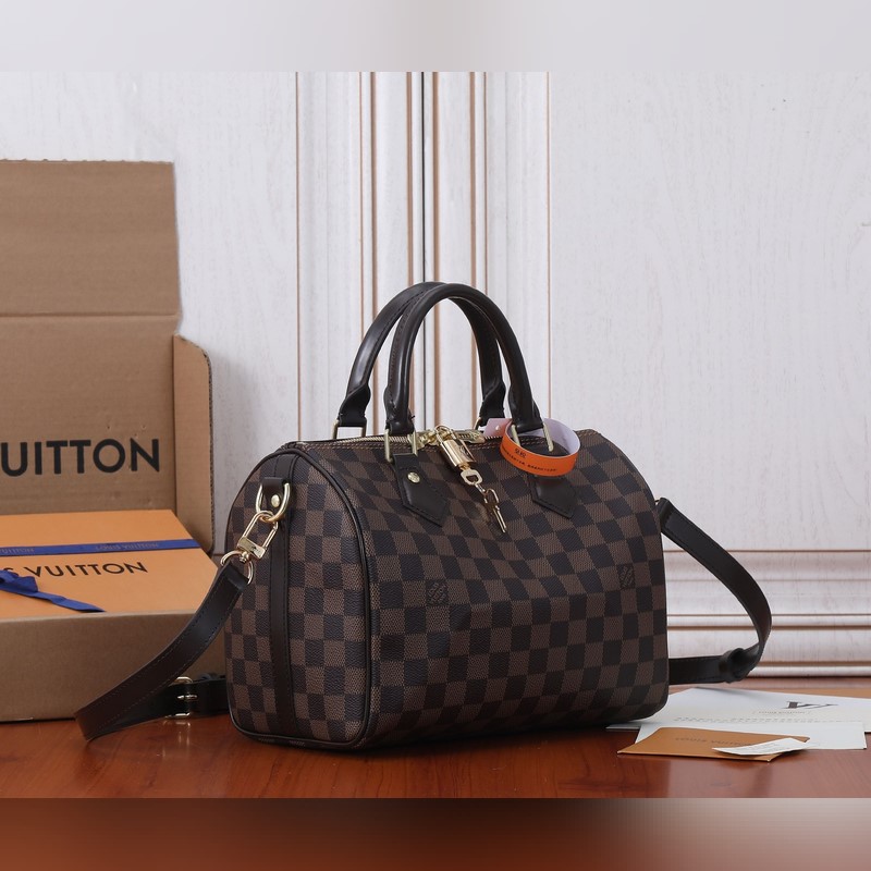 LV 다미에 에벤 캔버스로 만든 스피디 25 백팩 루이비통의 고전적인 매