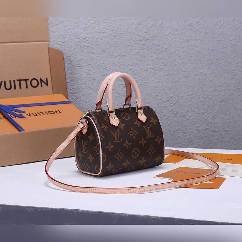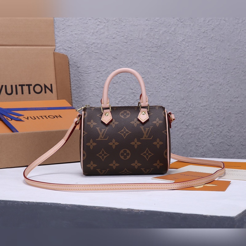 LV 모노그램 캔버스로 만든 나노 스피디 백 여성스러움을 발산하며 일상