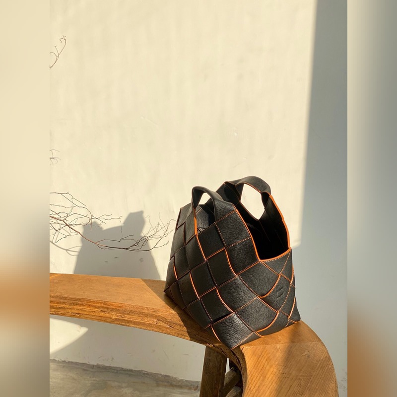 로우 직조 바구니 깅엄 가방 새로운 직조 가방 조용히 작동합니다. 한 번