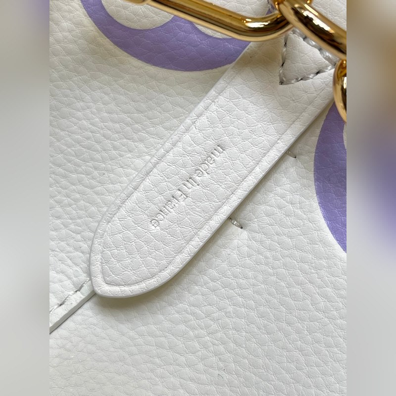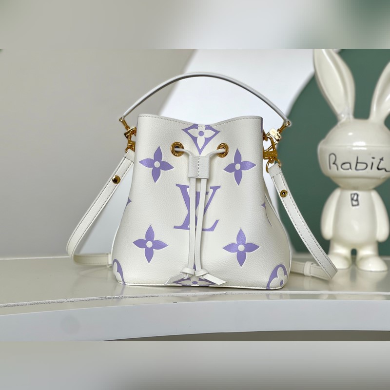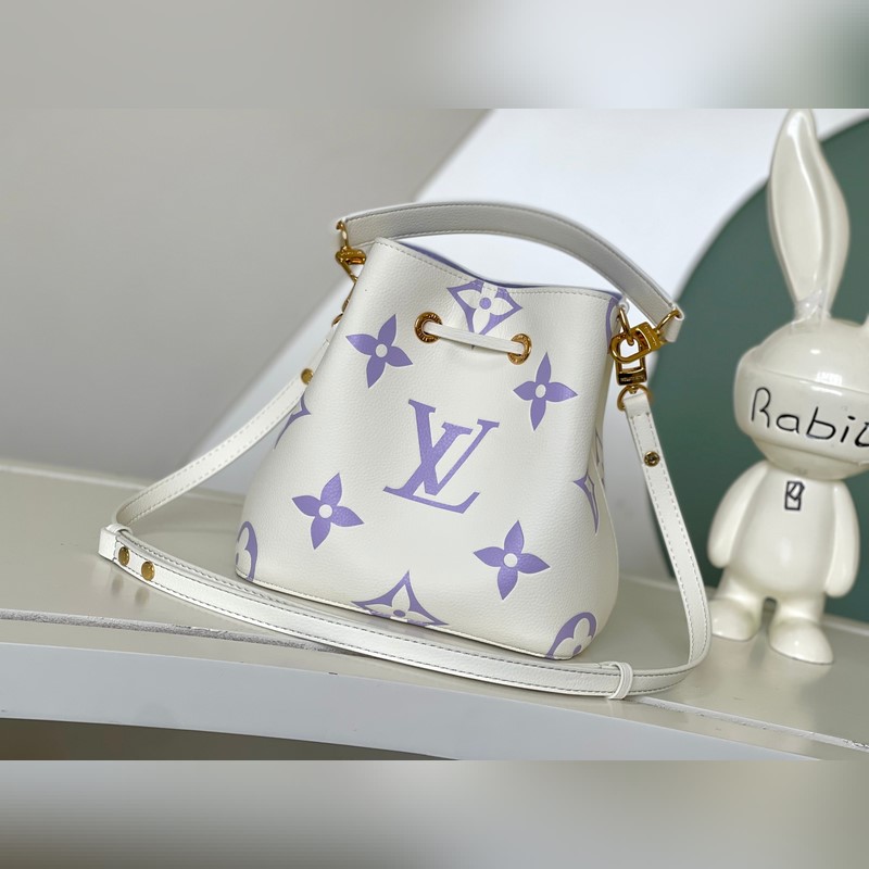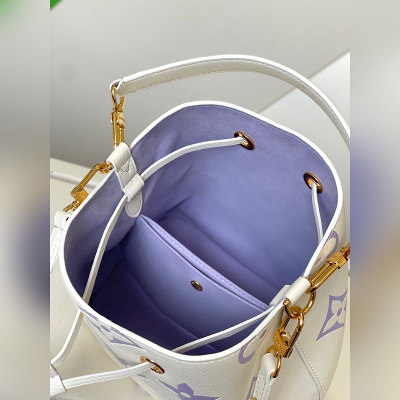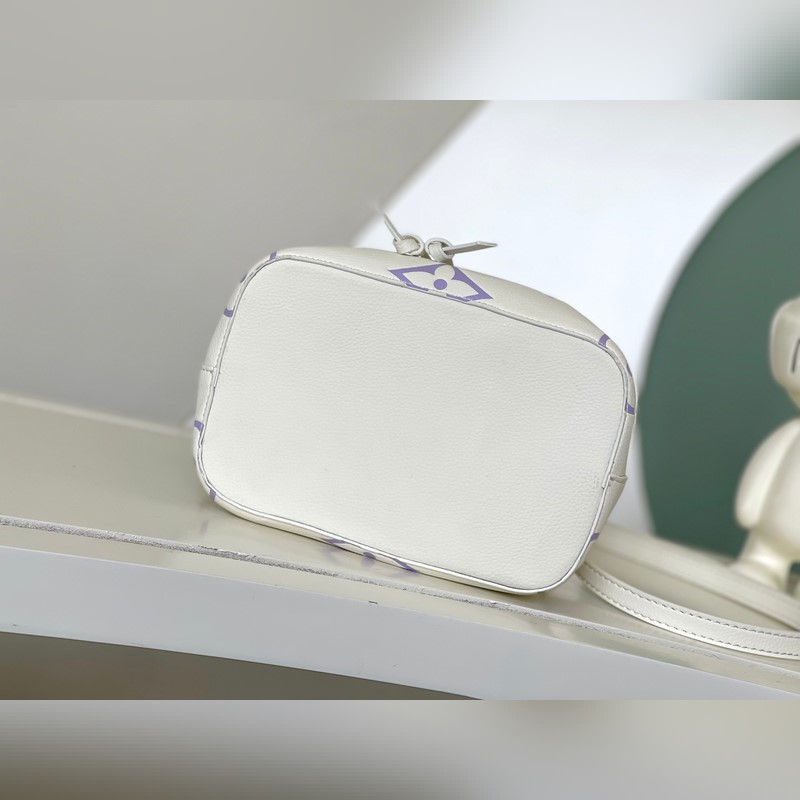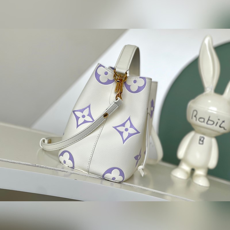 [원작 단일 소유자 촬영] M24048 화이트 퍼플 45716 화이트 퍼플 부드러운 소가죽으로 만든 네오노에 BB 버킷백은 나노 모노그램 엠보싱으로 장식되어 있습니다. 로고와 모노그램 플라워 패턴의 미니 버전은 부드러운 대비를 만들어 냅니다. 탈착식 가방 체인과 가죽 어깨끈의 브레이드 가죽 요소는 가방 본체와 같은 색상입니다. 크기: 20*20*13cm.