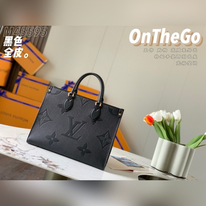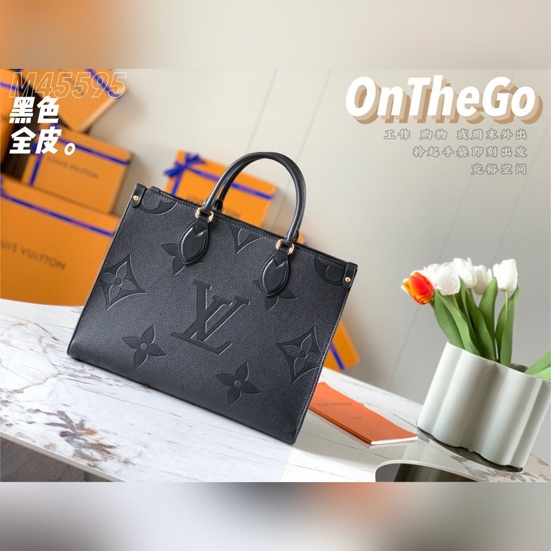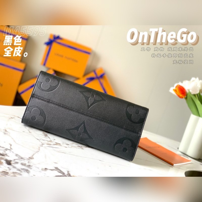 LV 모델 M45595 검정색 엠보싱 ONTHEGO 트럼펫 가방 업무
