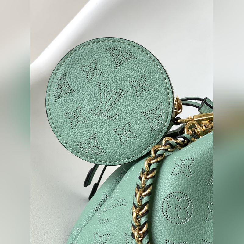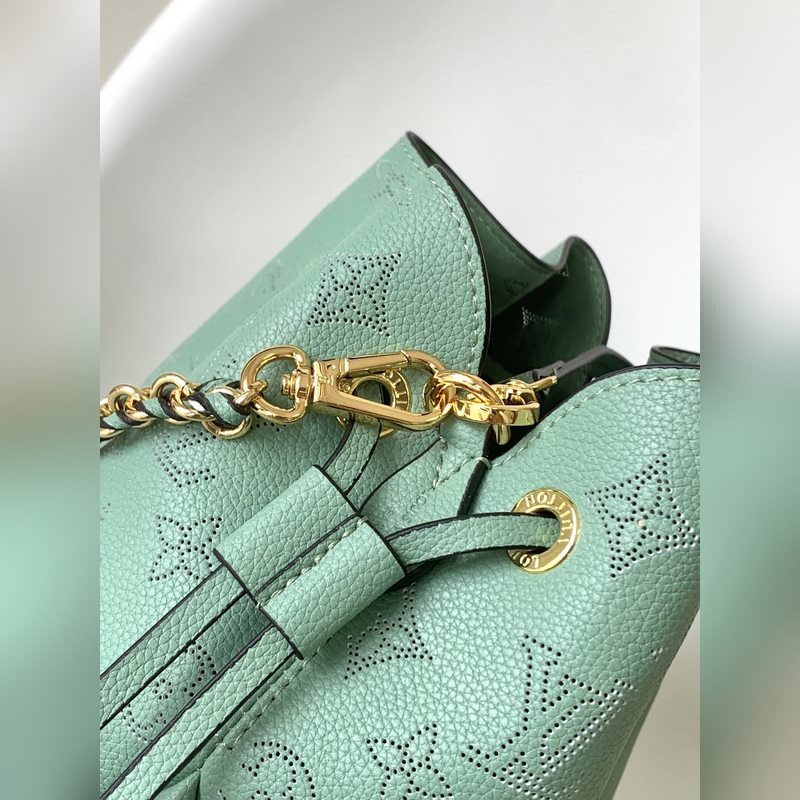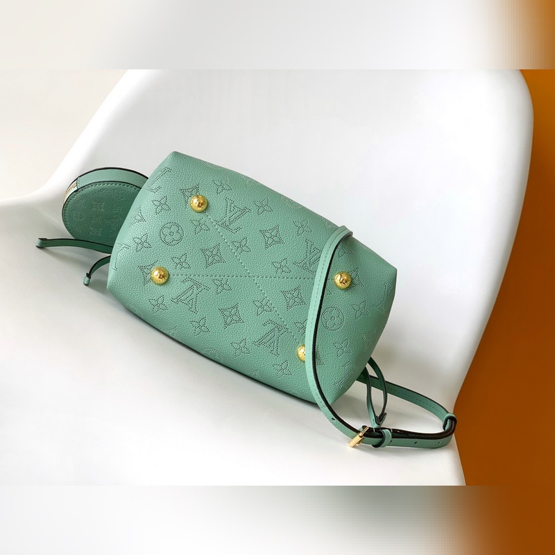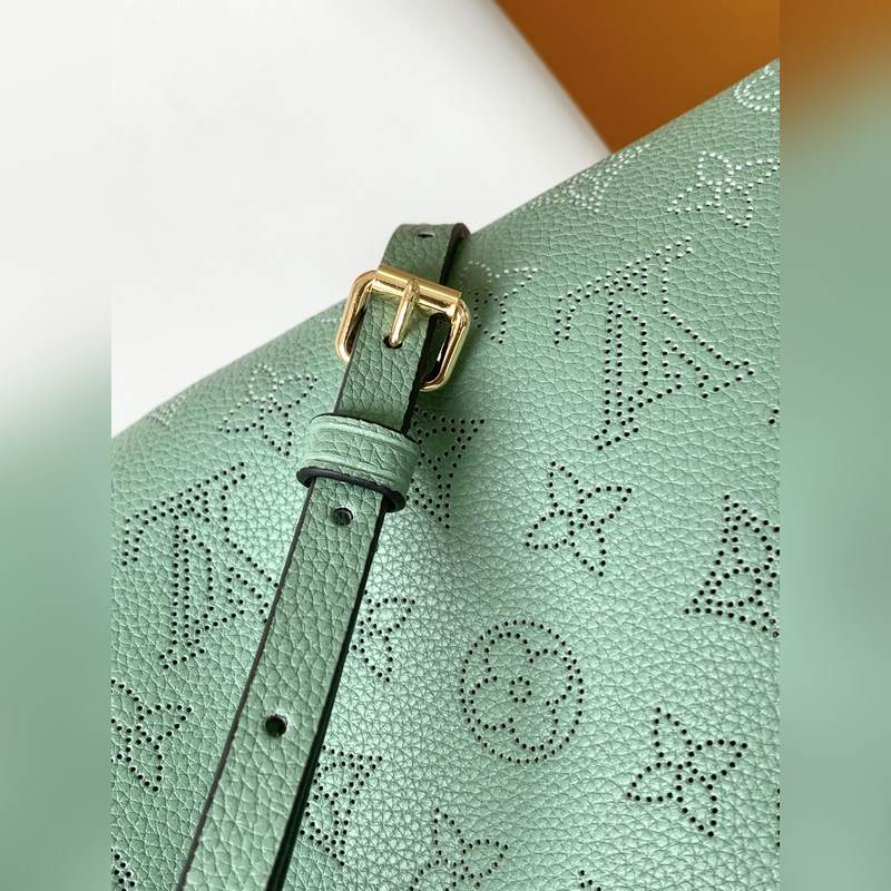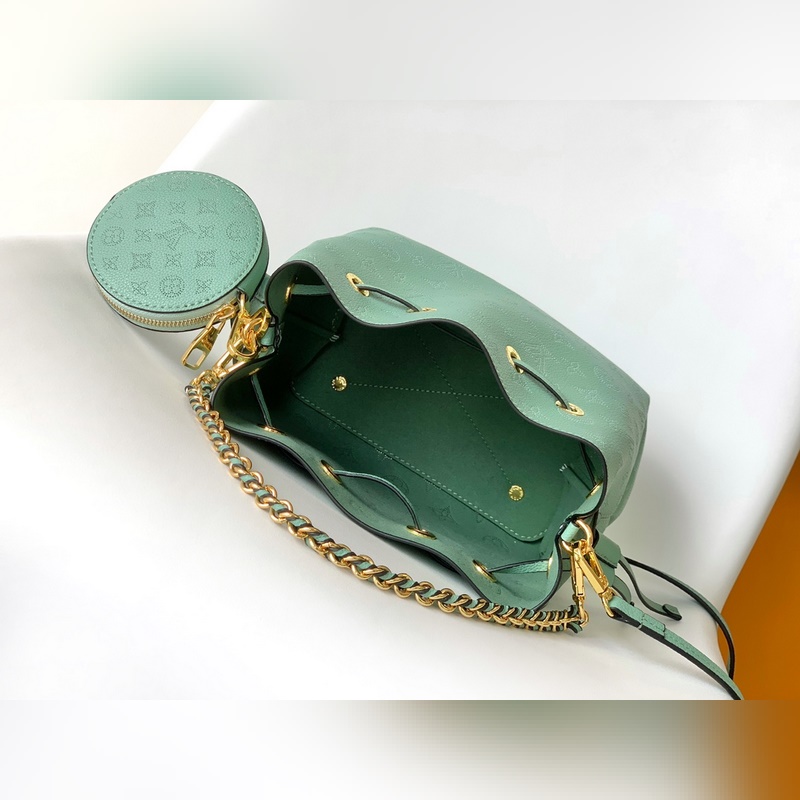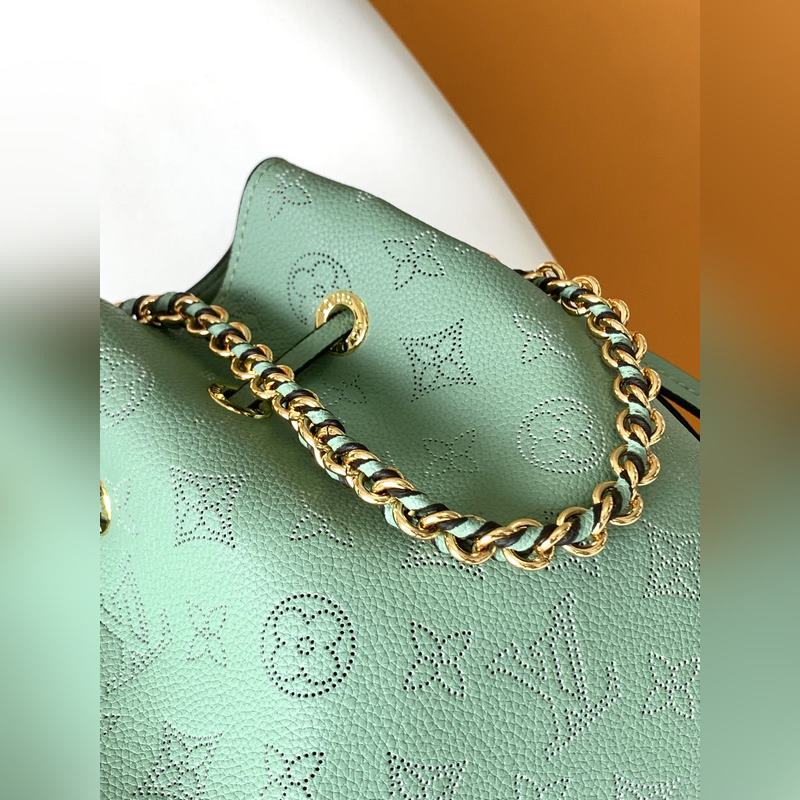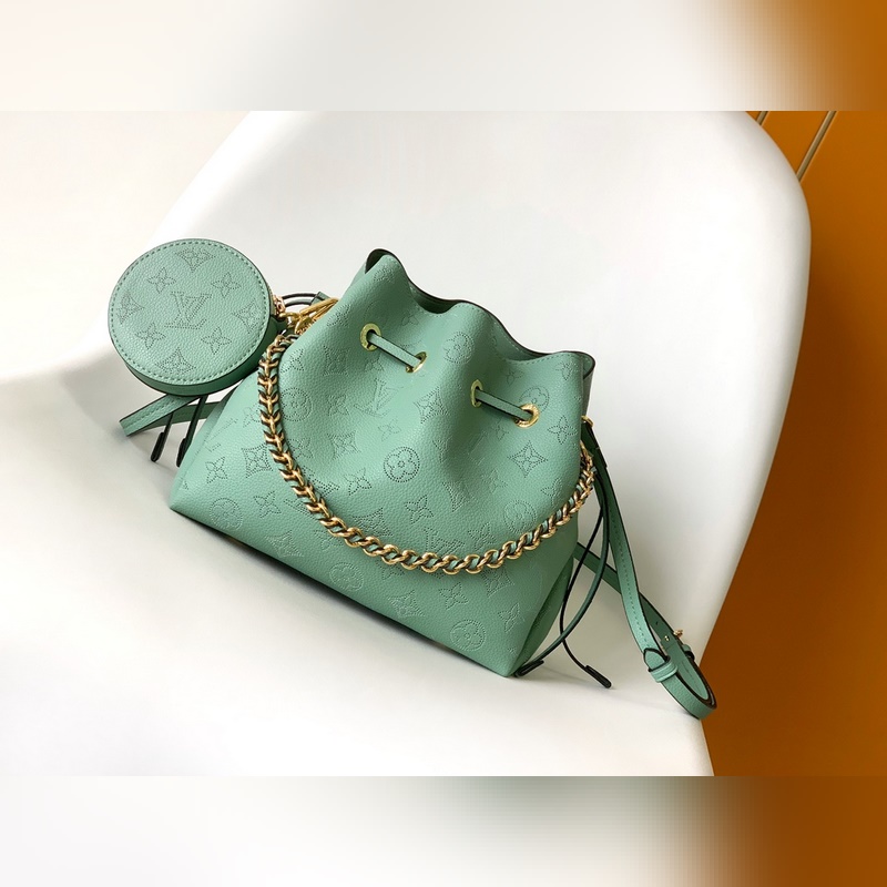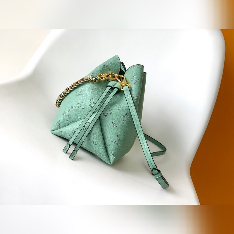 M25147 녹색 M22714 연보라 M57536 회색-분홍 M22176 연분홍 M21144 하늘색 M22198 리넨색 M57070 검정 M57068 목련색 M57201 회색 최고급 오리지널 벨라 버킷백은 천공 처리된 모노그램 소가죽으로 만들어졌으며 컴팩트한 형태입니다. 그리고 동전 지갑에 같은 패턴을 소형 비율로 적용하여 현대적인 스타일을 연출했습니다. 금속과 가죽으로 엮은 손잡이와 탈착식 가죽 어깨끈으로 다양한 휴대 옵션을 제공합니다. 19.0 x 22.0 x 14.0cm(가로 x 세로 x 높이) 천공 소가죽 소가죽 트림 극세사 안감 금속 부품 동전 지갑 가죽 끈으로 묶어 물건이 빠지지 않도록 방지 금속 스터드 어깨끈: 탈부착 가능 길이 조절 가능 손잡이 길이: 50.0cm 조절 가능한 스트랩 길이: 56.0cm 핸들: 단일 핸들 탈착 가능