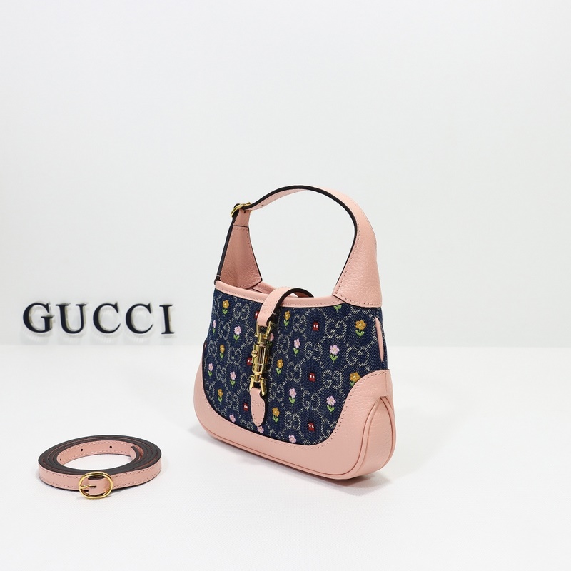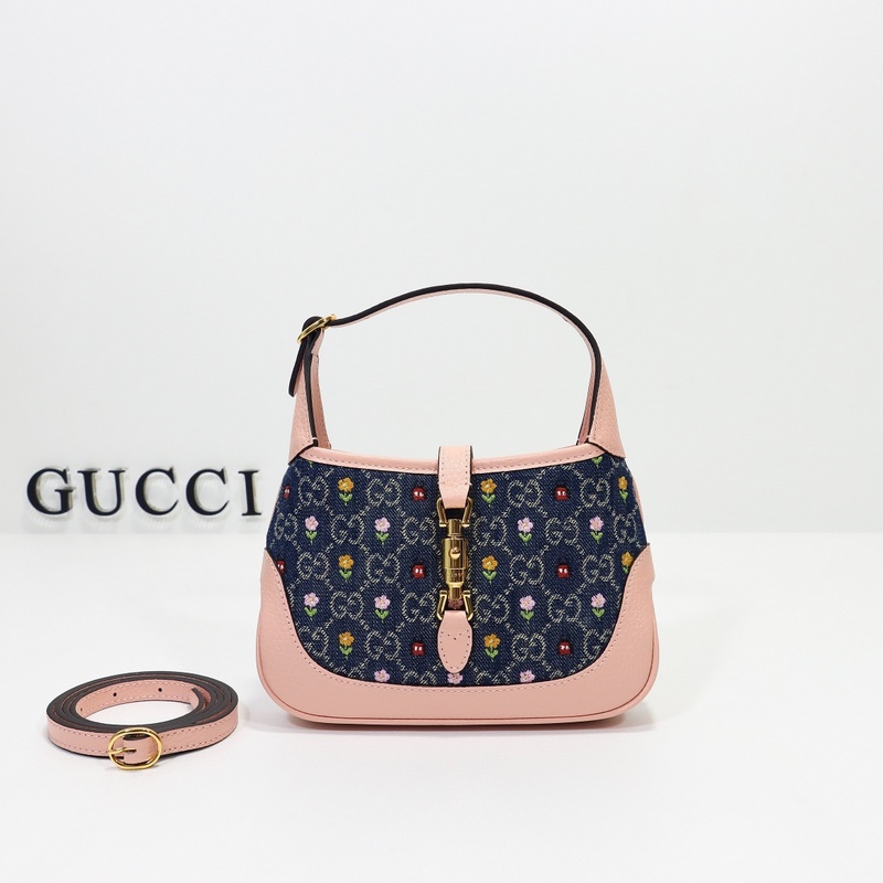 GUCCI 모델 번호: 637092 핑크색 가죽과 파란색 데님 크기: 가