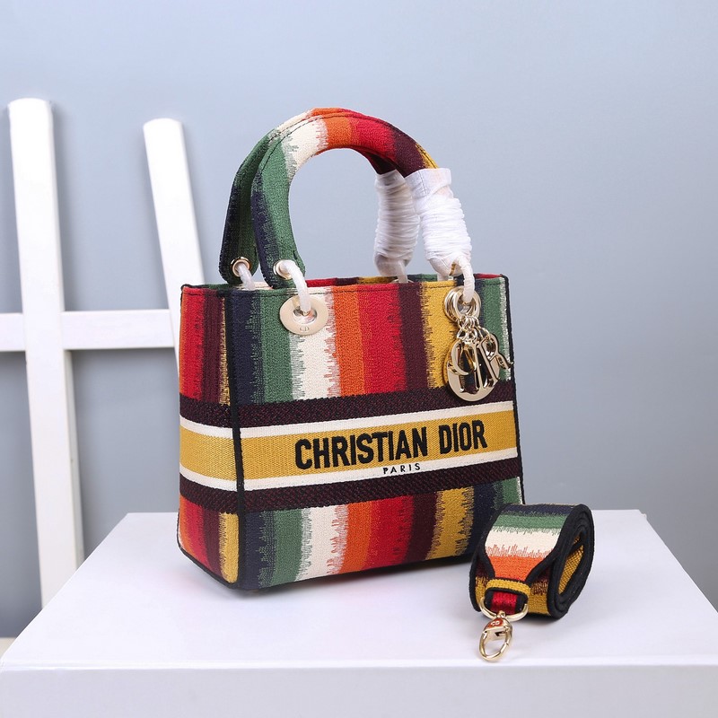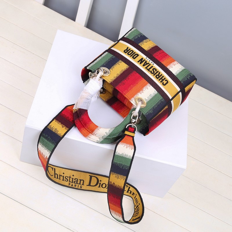 레이디 D-라이트 5패널 자수 무지개 줄무늬 우아한 기품과 디올 브랜드가
