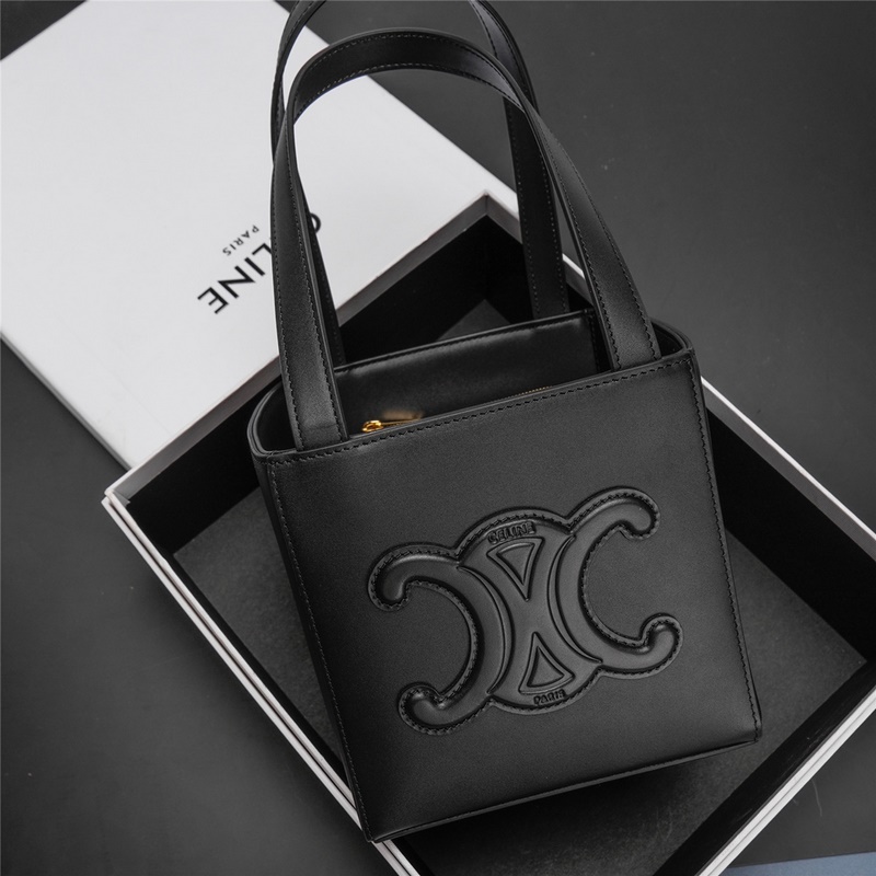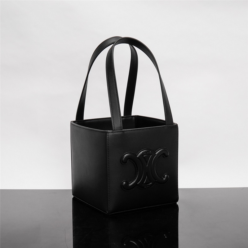 CELINE TRIOMPHE 로고 양각 송아지 가죽 큐브 핸드백 크기
