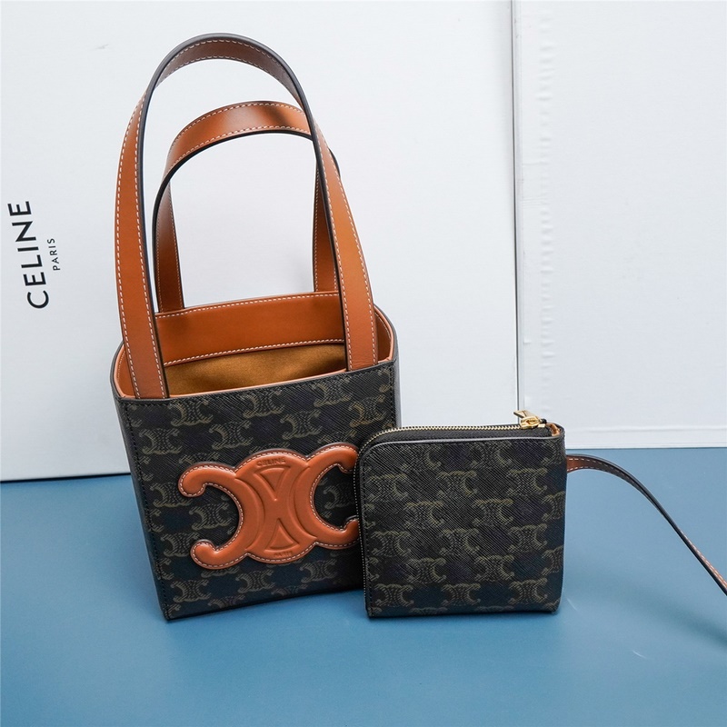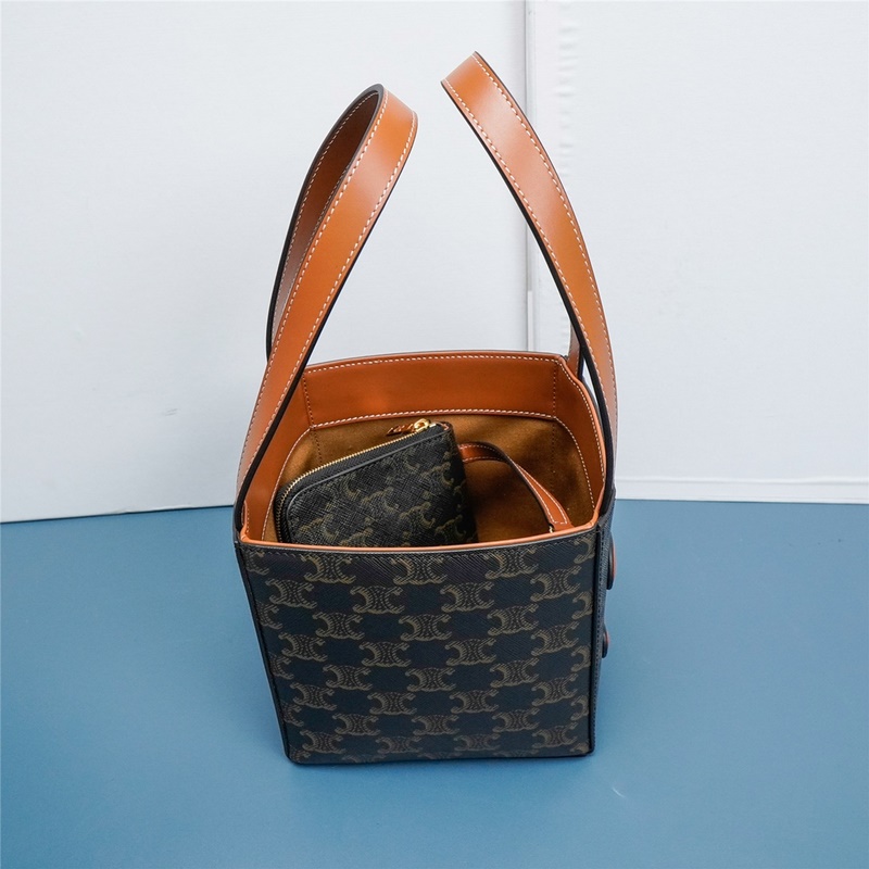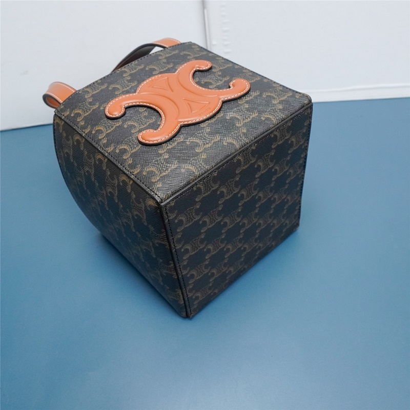 CELINE TRIOMPHE 로고 인쇄 소가죽 큐브 핸드백 크기 6 x