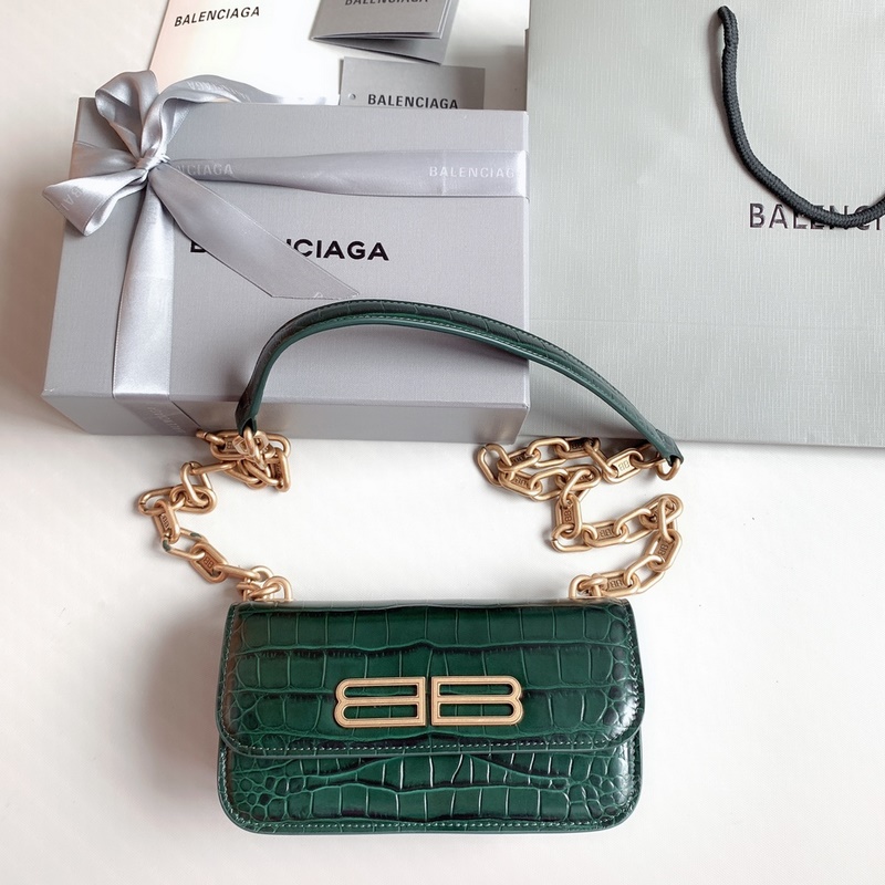 [녹색 악어 잉크] BALENCIAGA 가십백 가십 가방은 앞쪽 덮개에