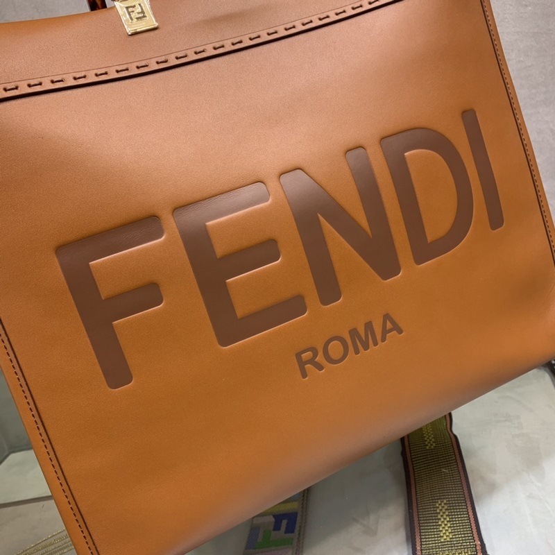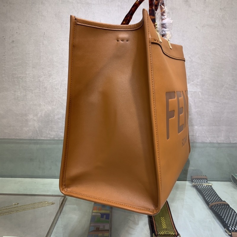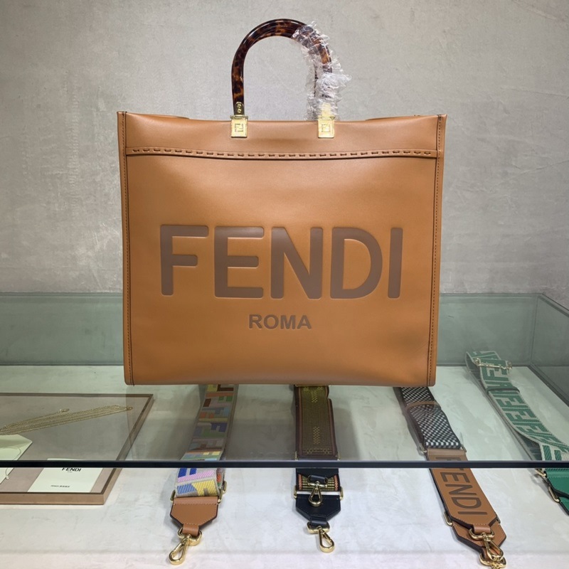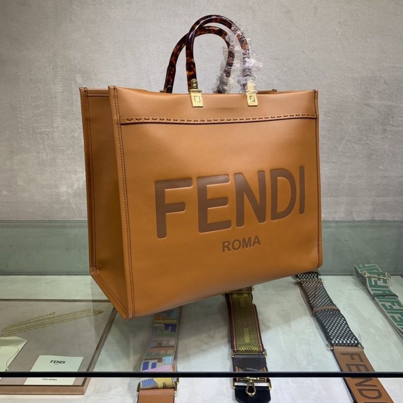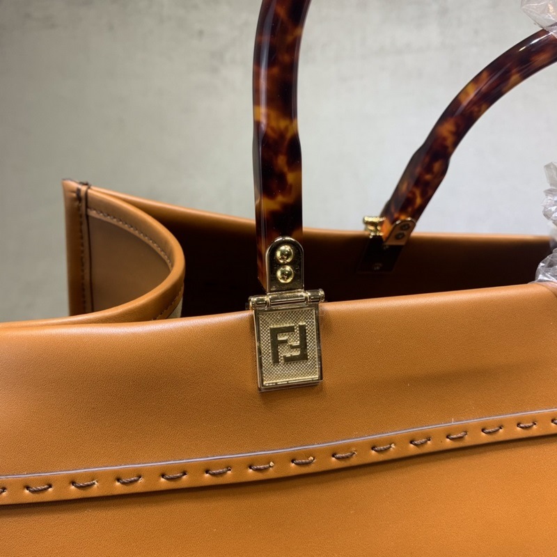 FENDI 선 토트 대형 쇼핑백 갈색 거북이 등껍질 색상의 단단한 플렉시