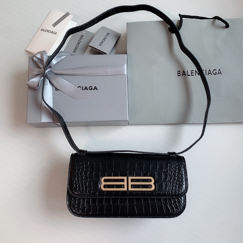 [검은 악어] BALENCIAGA 가십백 새로운 가십 미니백은 앞쪽 덮개