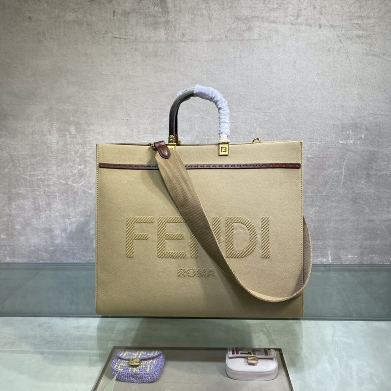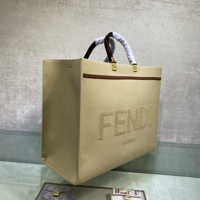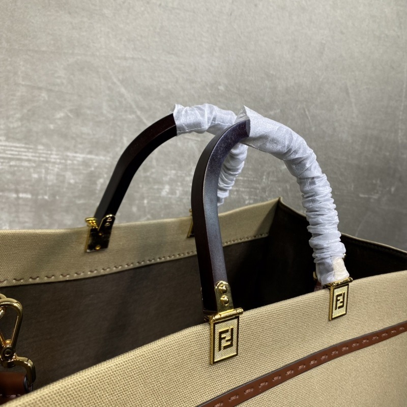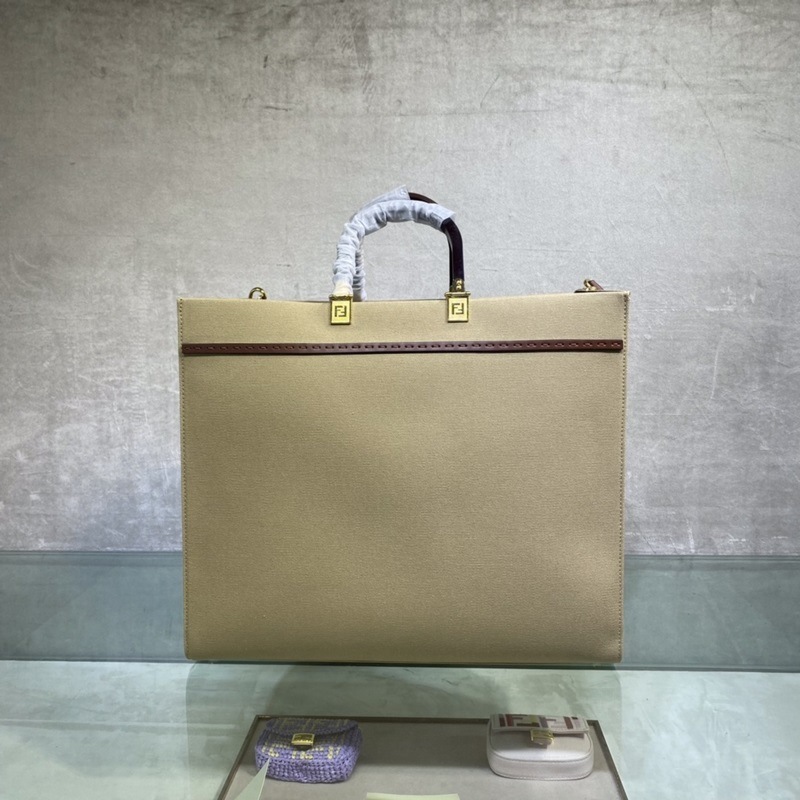 FENDI 선샤인 라지 베이지 캔버스 토트백 동일한 색상의 FENDI