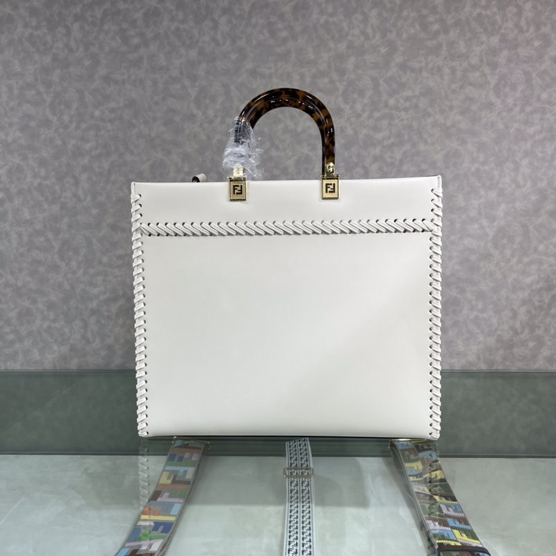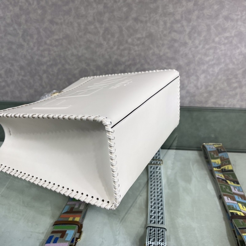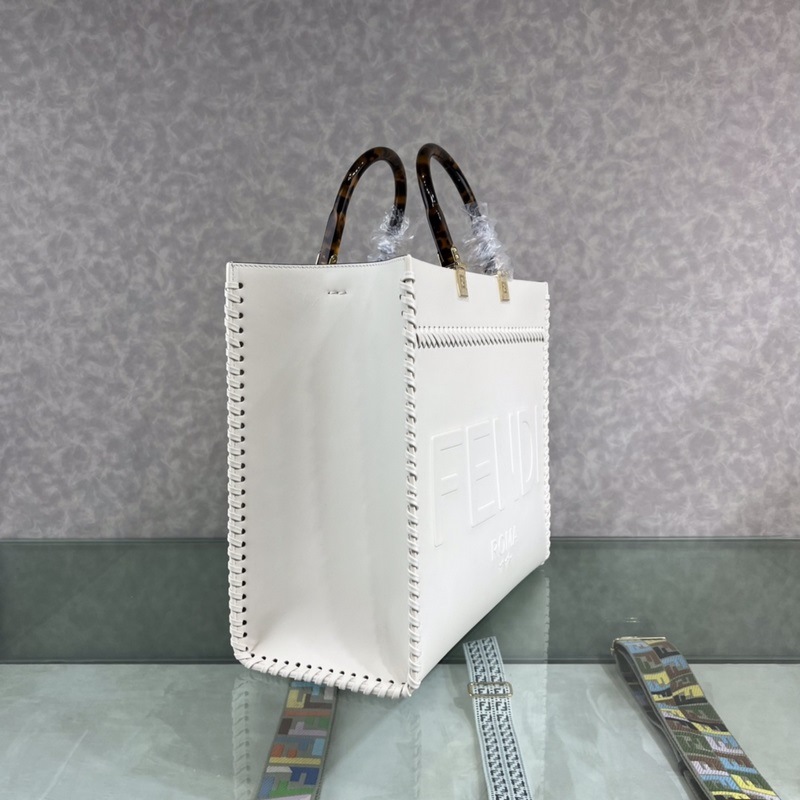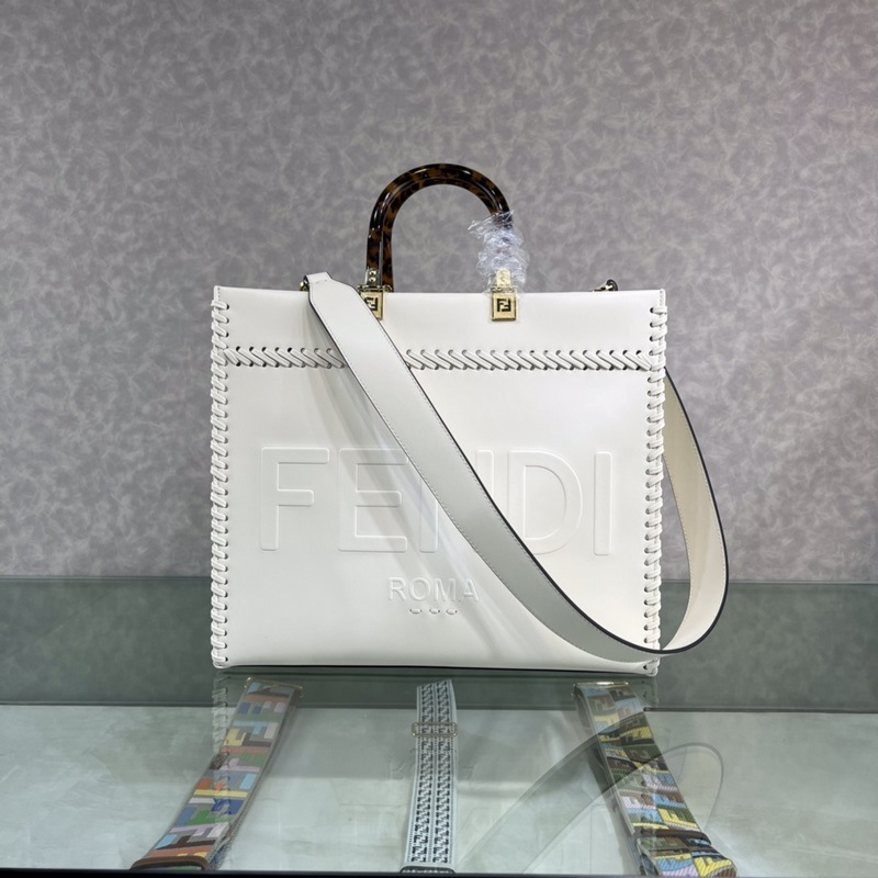 FENDI 선샤인 미디엄 화이트 가죽 토트백 토트백 베이지색 송아지 가죽