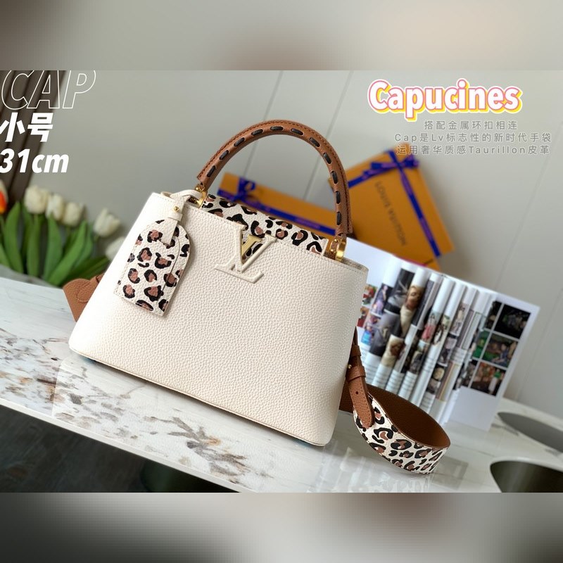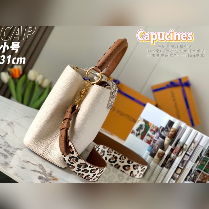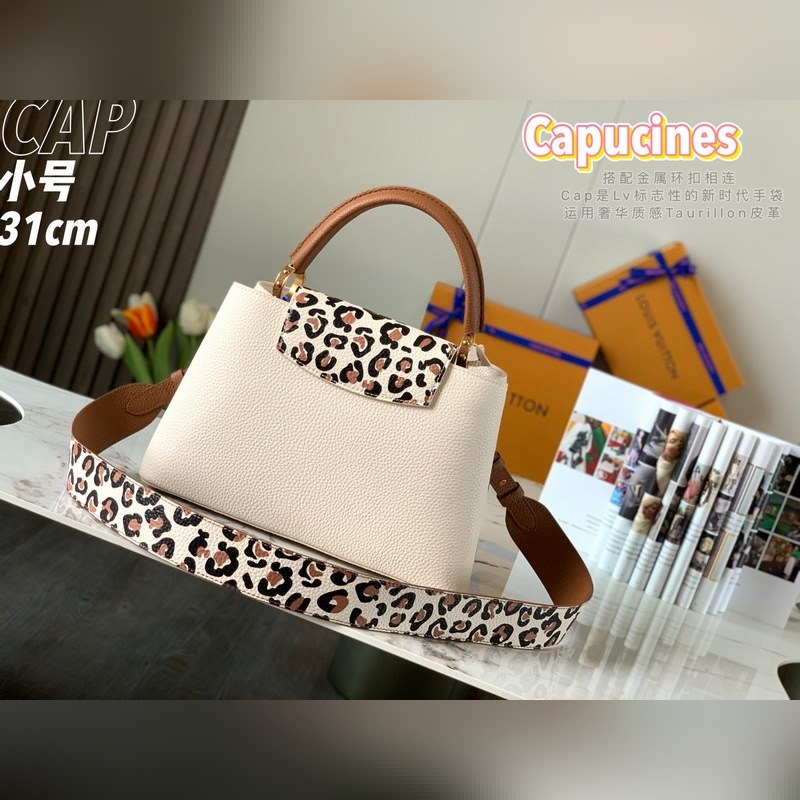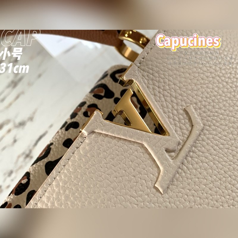 LV Capucines 미디엄 백 모델 M58575 화이트 레오파드 카