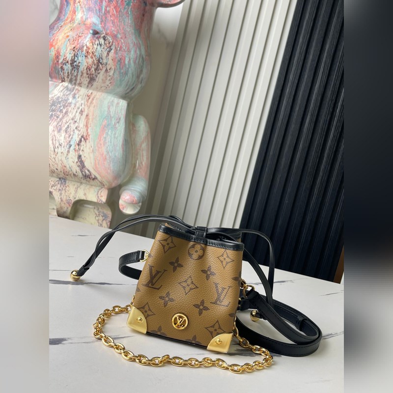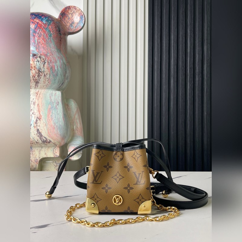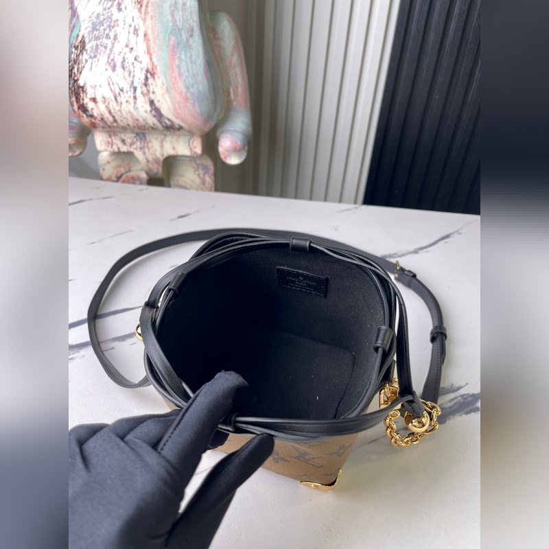 [최고 품질의 정품 독점적인 실제 사진] M82885 노란색 꽃 미니 버킷 백 Shao Mai Ba 시리즈 온라인 한정 핸드백 M82885 노란색 꽃(Shao Mai Ba) 모노그램 리버스 캔버스로 만든 현대적이고 세련된 노에 가죽 가방. 디자이너 니콜라 제스키에르가 한국에서 열린 패션쇼를 기념하기 위해 특별히 제작한 프로젝트. 컴팩트한 디자인은 행운을 상징하는 한국의 전통적인 복주머니를 연상시킵니다. LV 서클 참과 트렁크에서 영감을 받은 금속 모서리 같은 디테일은 하우스의 감각을 보여줍니다. 일상복과 이브닝 룩 모두에 어울리는 고급스러운 가방. 한정판으로 현재 온라인에서만 구매 가능합니다. 11.5 x 11.5 x 11.5cm.