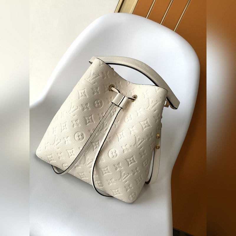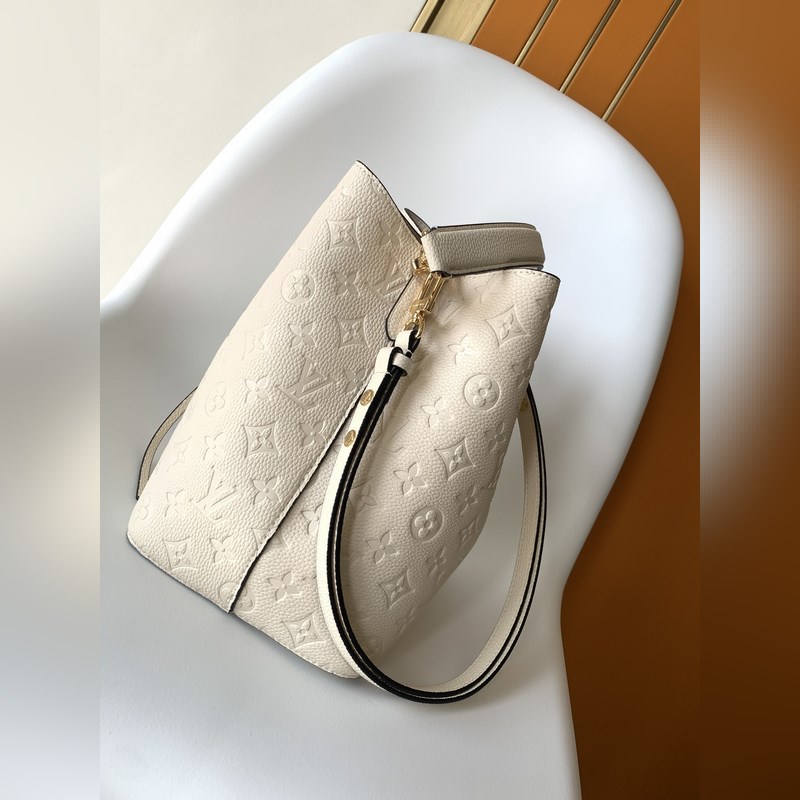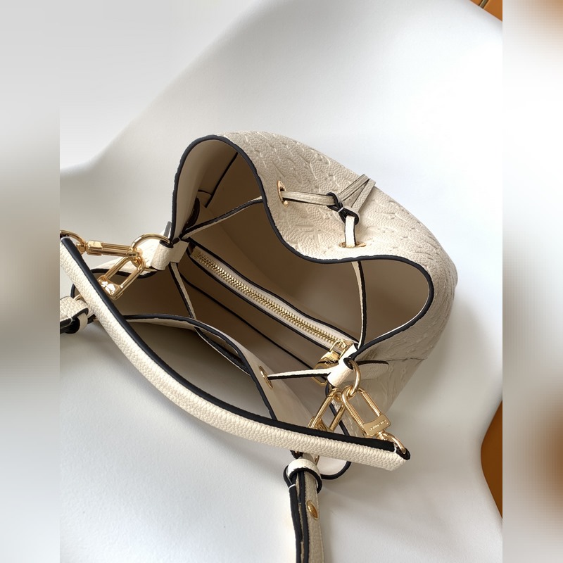 M45256 검정 M45306 파랑 M46526 크림 최고급 오리지널 M45307 크림 브라운 최고급 오리지널 N?o No? 모노그램 엠브로이싱 가죽으로 만든 미디엄 버킷 백 우아한 가죽 끈과 섬세한 구멍이 특징입니다. 가벼운 형태는 몸의 움직임에 잘 맞으며 탈착식 상단 손잡이나 분리 및 조절이 가능한 어깨 스트랩을 영리하게 활용하여 손으로 들거나 어깨에 메거나 몸에 걸칠 수 있어 편리합니다. 26.0 x 26.0 x 17.5cm(길이 x 높이 x 너비) 엠보싱 그레인 가죽 소가죽 트림 극세사 안감 금속 부품 칸 중앙 지퍼 포켓 금속 구멍 어깨끈: 탈부착 가능 길이 조절 가능 핸들 길이: 31.0cm 조절 가능한 스트랩 길이: 54.0cm 핸들: 단일 핸들 탈착 가능