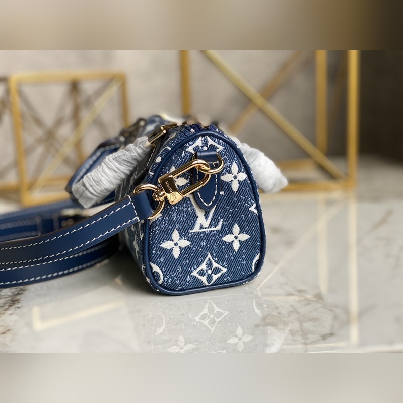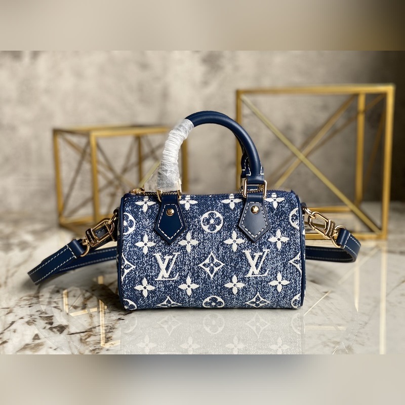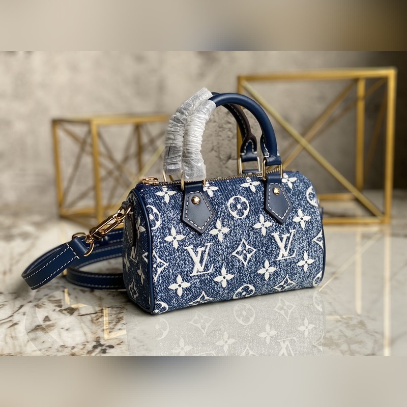 LV 나노 스피디 핸드백 모델 M81168 블루 데님 스피디 베개 커버