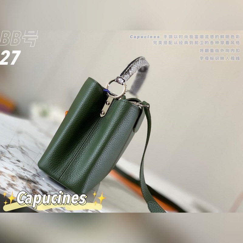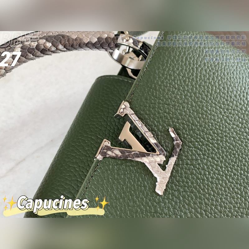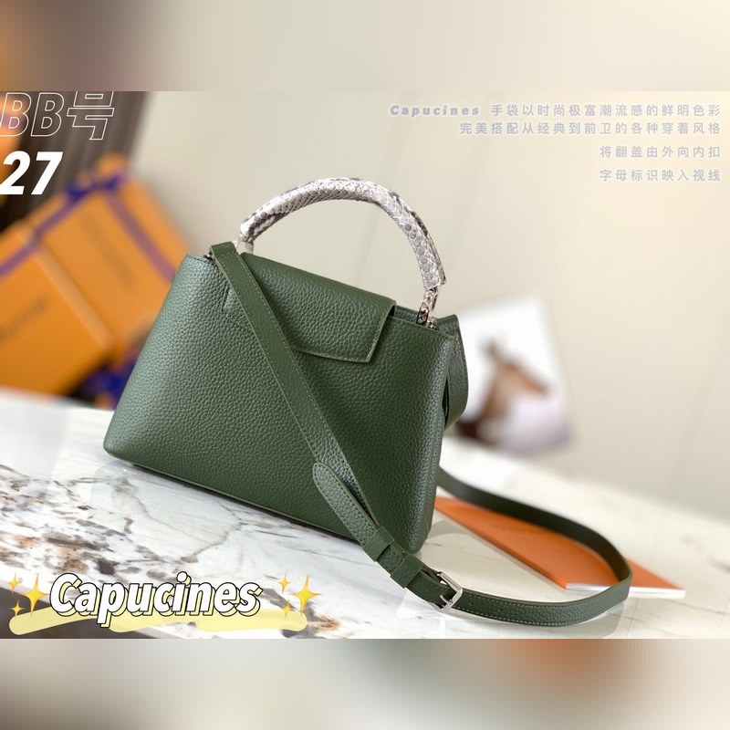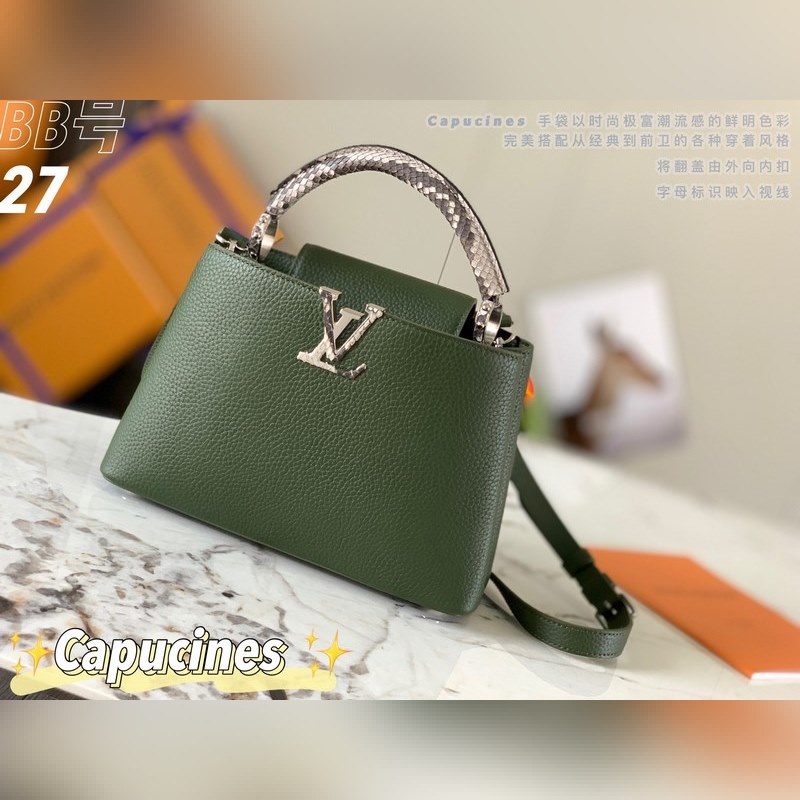 LV 모델 N97980 새로운 다크 그린 색상 파이톤 골드 버클 토트백