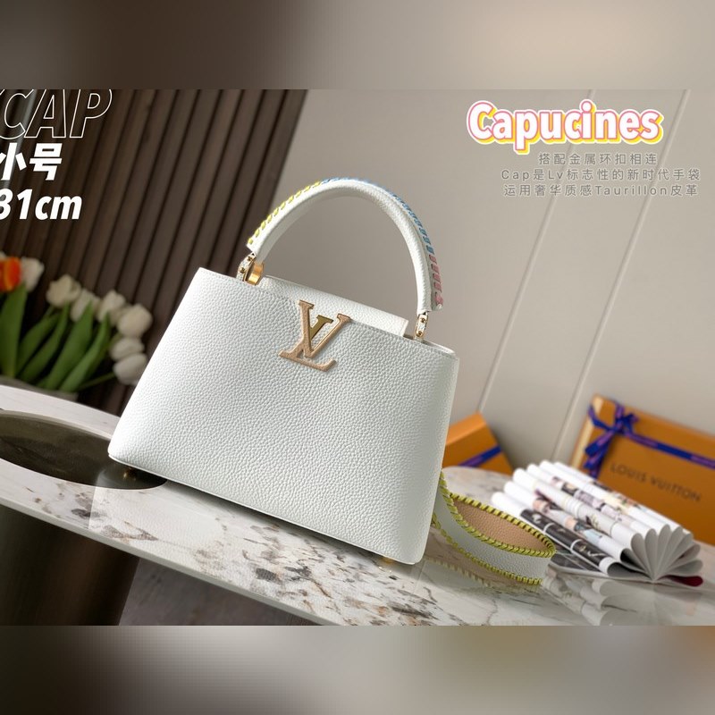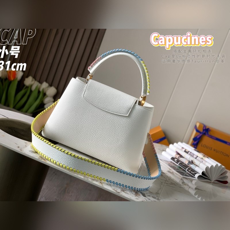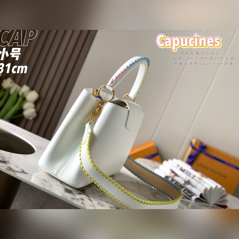 LV 모델 M57672 니트 화이트 토트백 숄더백 이 Capucines