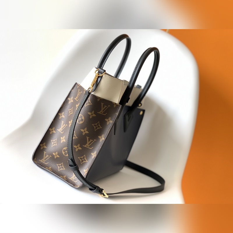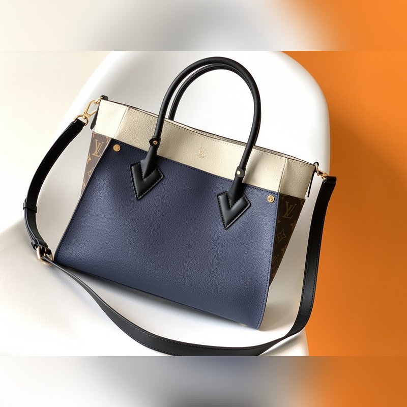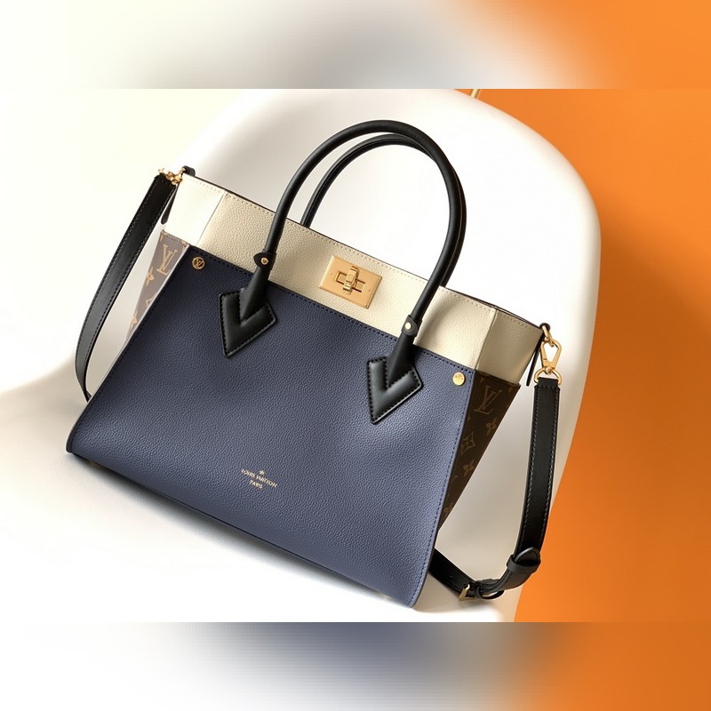 LV 더블 핸들 토트백 모델 M55933 파란색과 고풍스러운 꽃 무늬 올