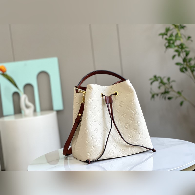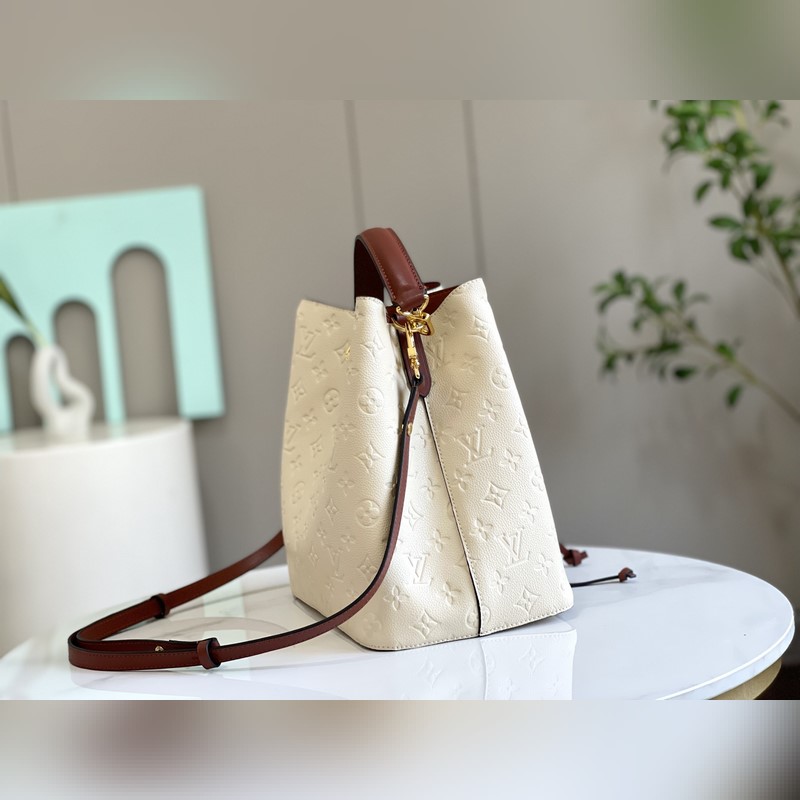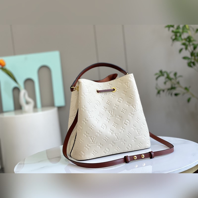 [축하하다] [축하하다] 해외 오리지널 싱글 44022 3색 리턴 배송 네오 노에 미디엄 버킷 백은 모노그램 앙리네트 엠보싱 가죽으로 만들어졌으며 가죽 끈과 섬세한 아일릿으로 강조되어 더욱 우아한 느낌을 줍니다. 가벼운 형태는 몸의 움직임에 잘 맞으며 탈착식 상단 손잡이나 분리 및 조절이 가능한 어깨 끈을 영리하게 활용하여 손으로 들거나 어깨에 메거나 몸에 걸칠 수 있어 편리합니다. 26 x 26 x 17.5 cm