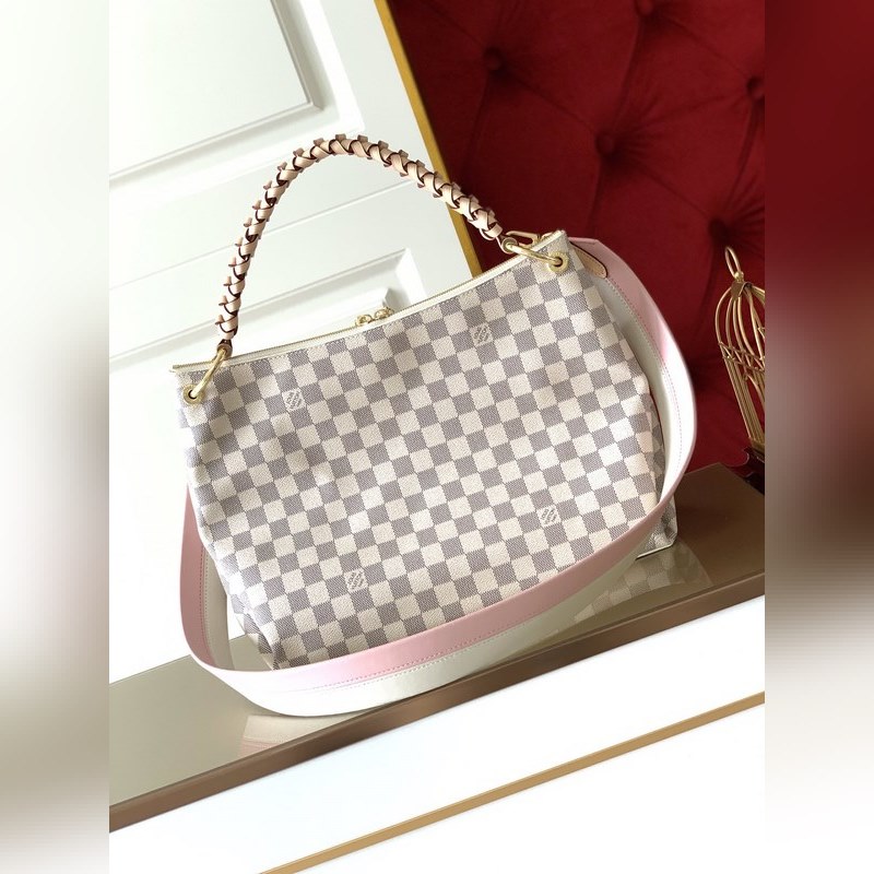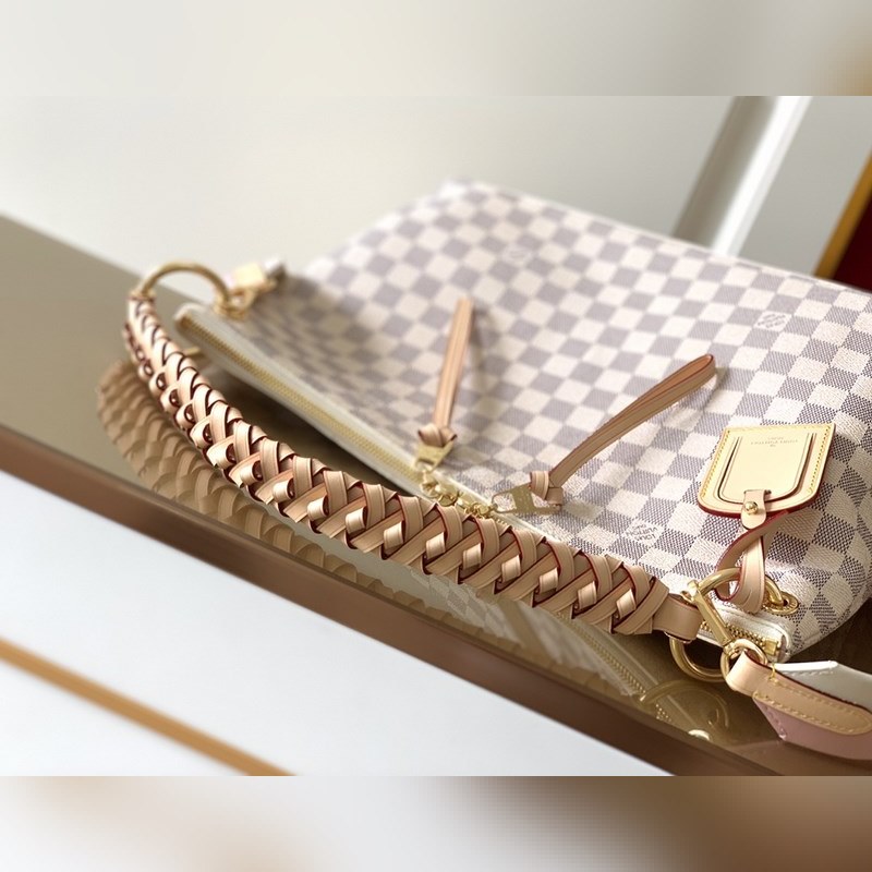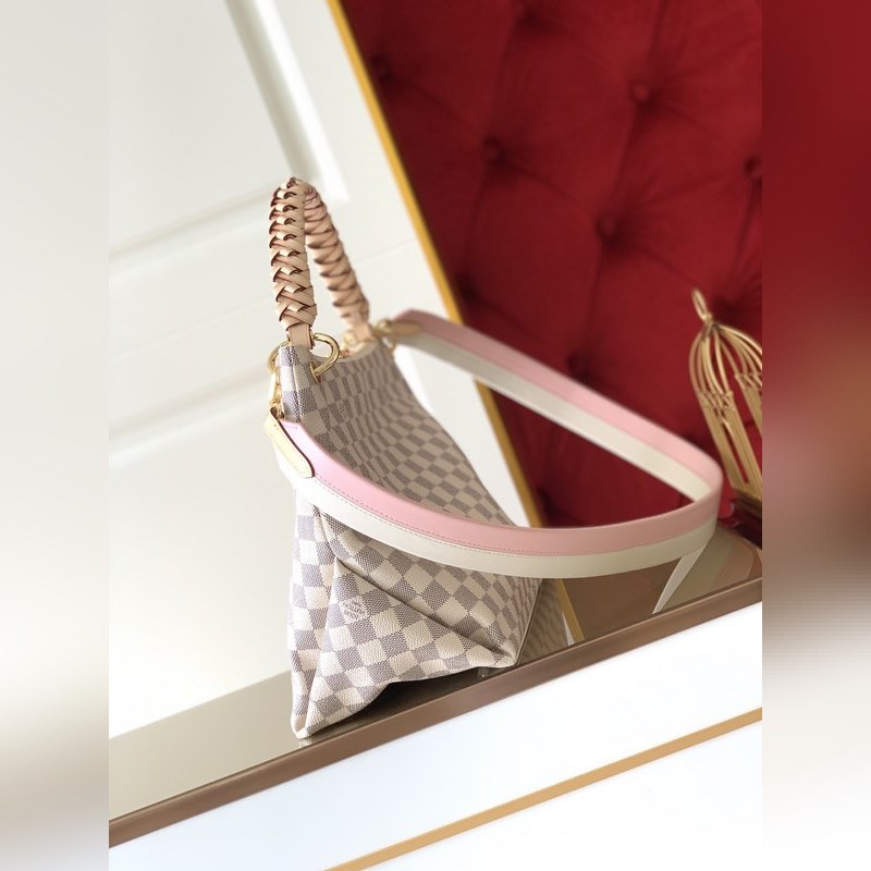 LV 화이트 그리드 위브 보부르 호보 미디엄 핸드백 모노그램은 손으로 염