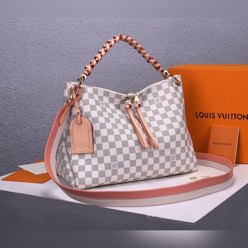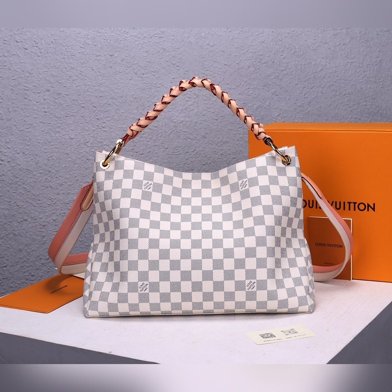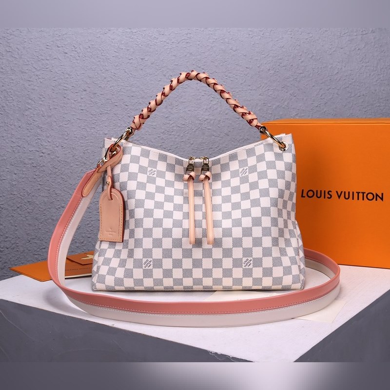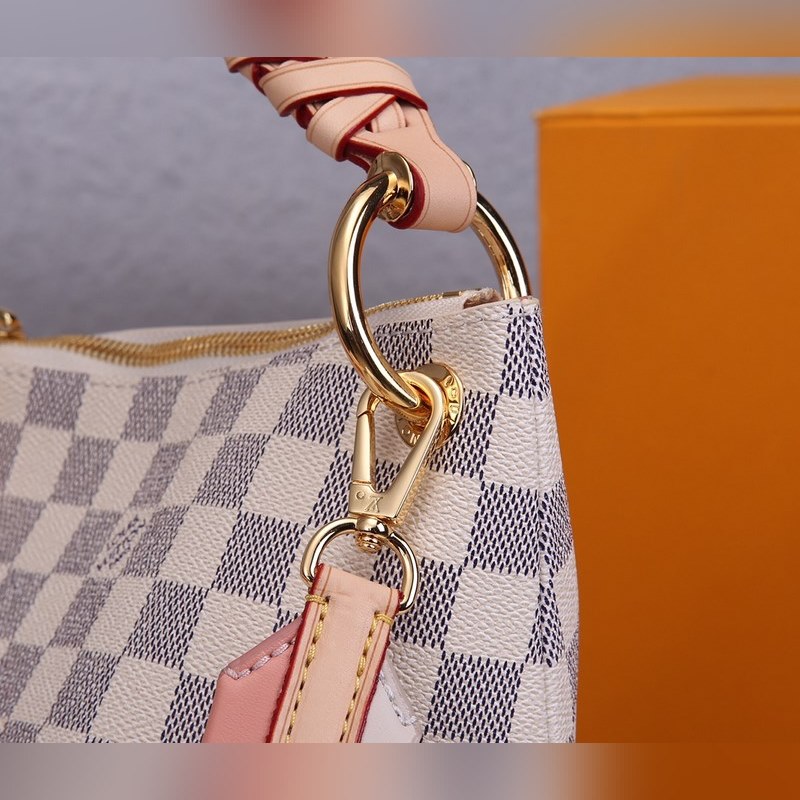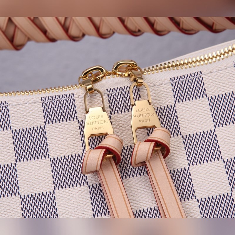 LV 보부르 호보 쇼핑백 흰색 체크무늬 직조 손잡이 중형 모델: N4
