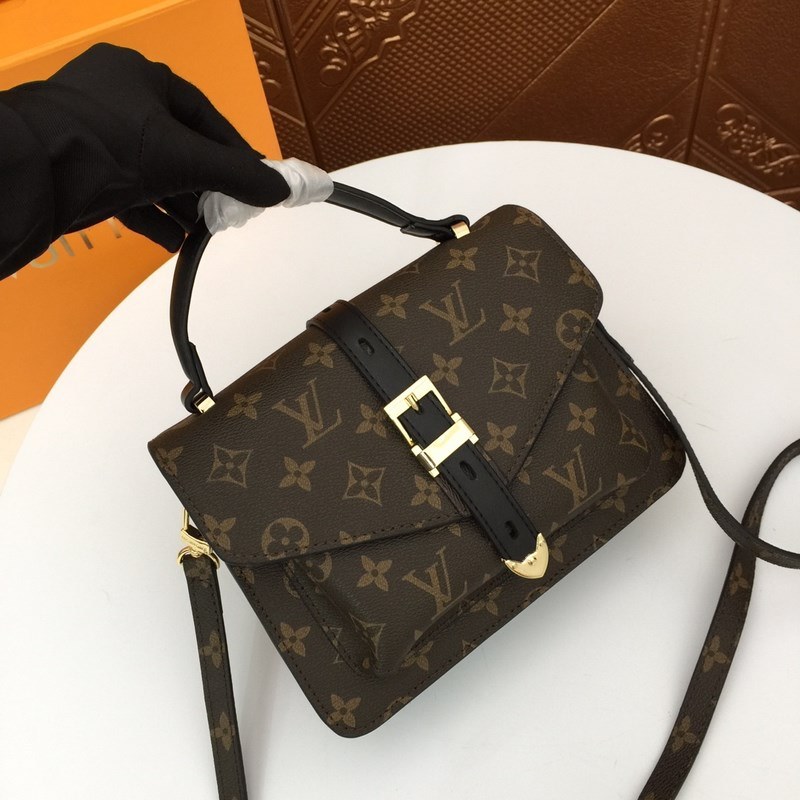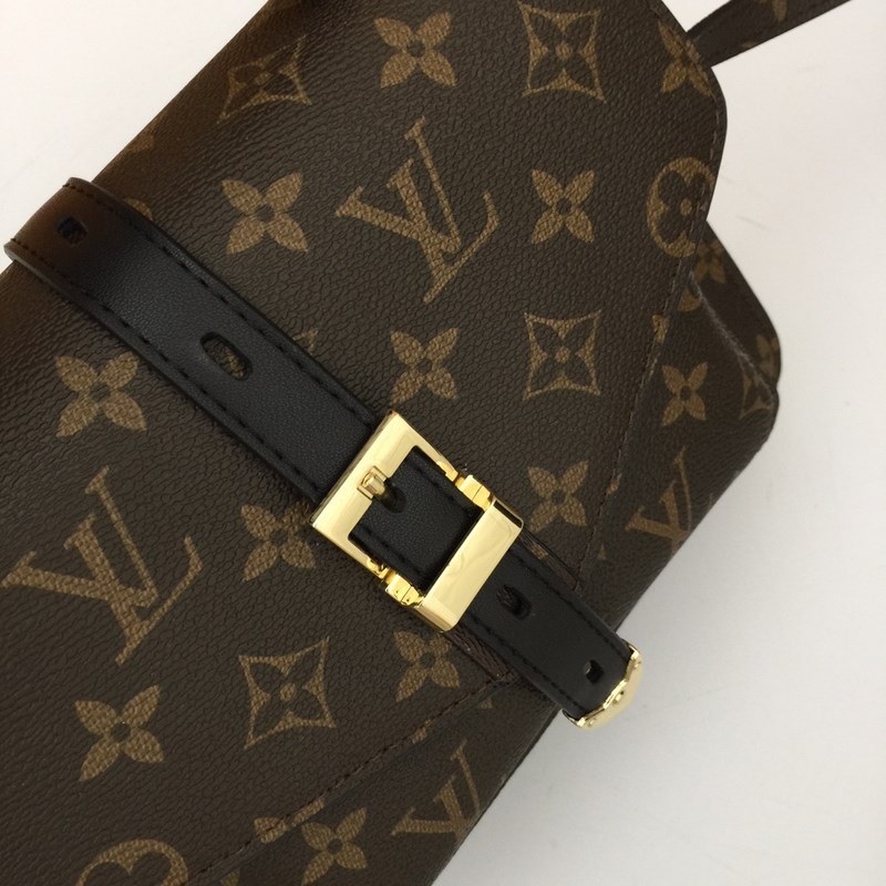 LV 모노그램 캔버스 숄더백 모델 66823 플랩의 마감은 소가죽으로