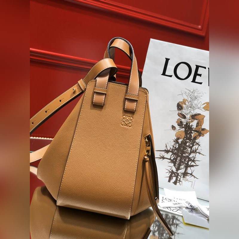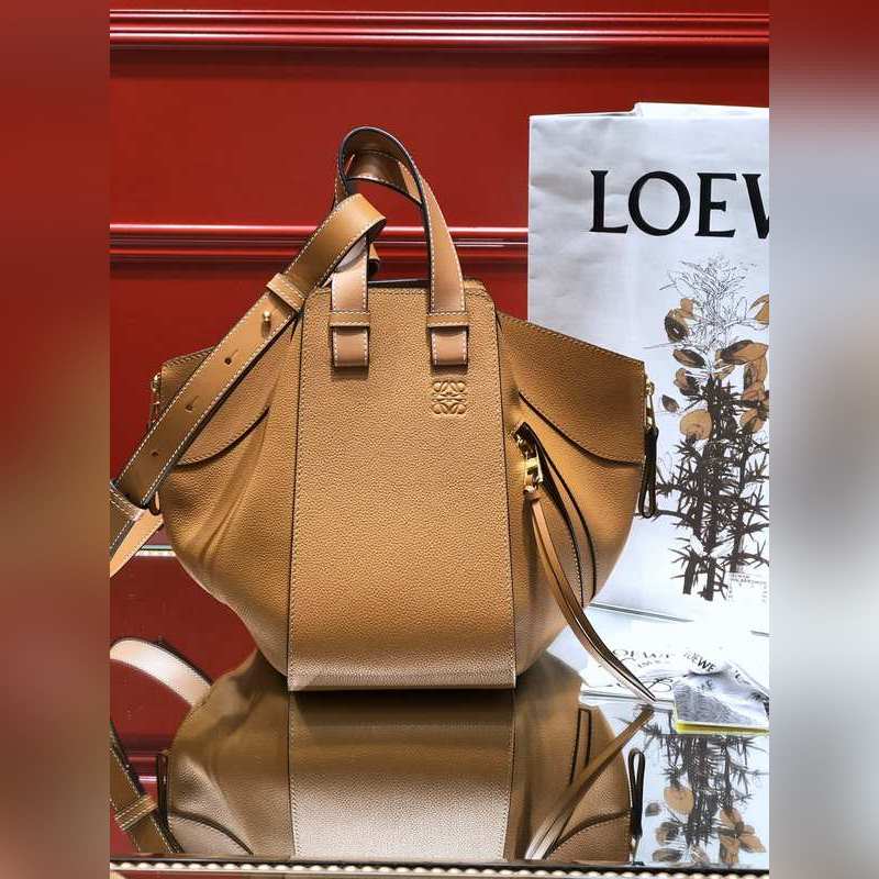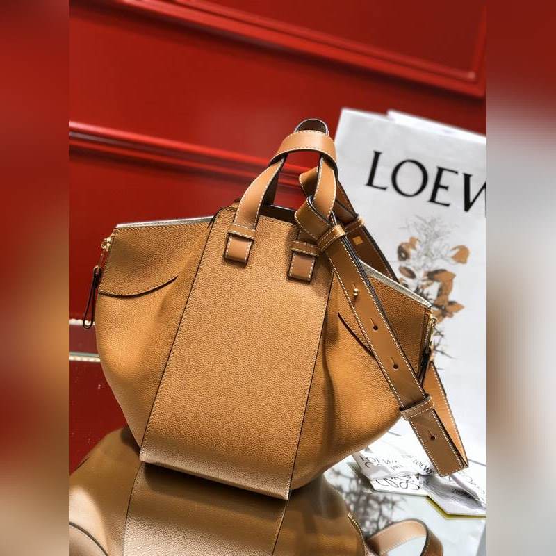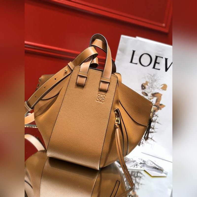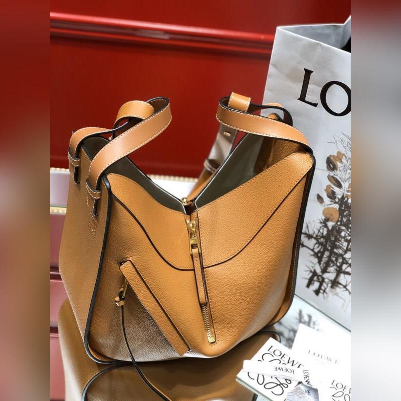 로에베 해먹 리치 패턴의 캐러멜 토트백 대용량에 접을 수 있는 지퍼 디자