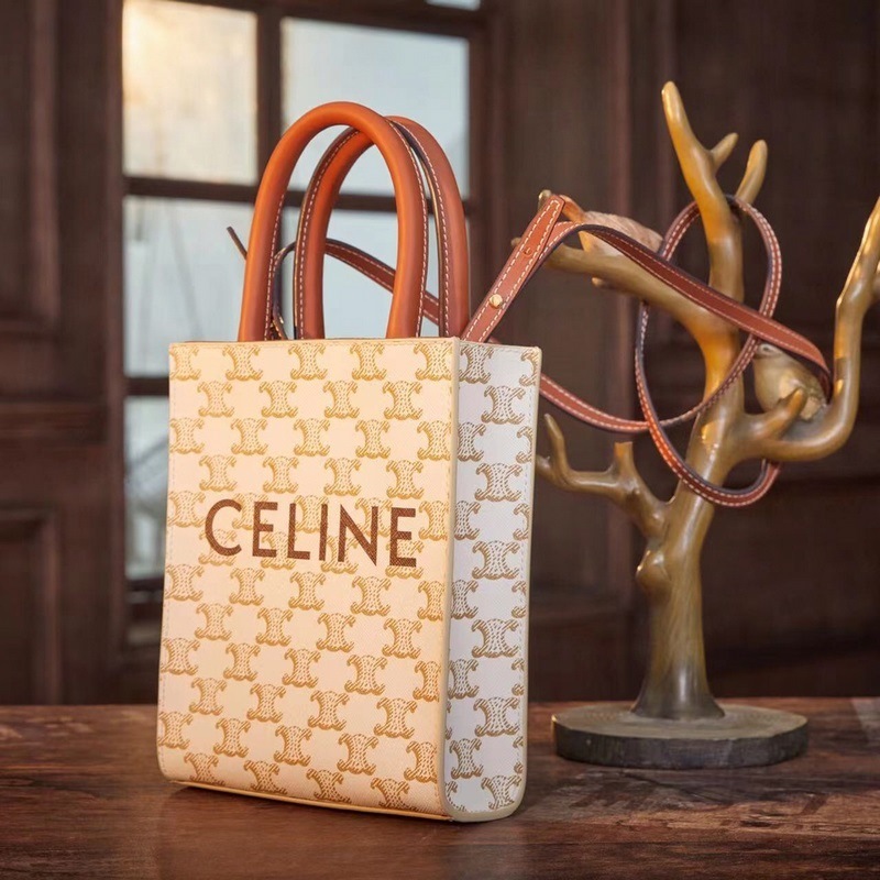 셀린느 CABAS TRIOMPHE 캔버스 미니 버티컬 핸드백 코팅 캔버스