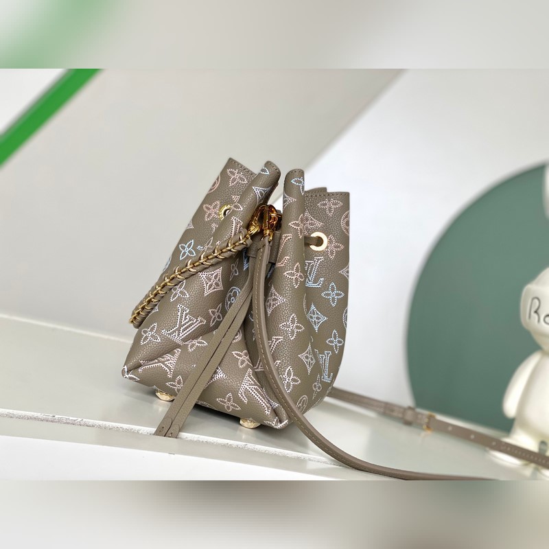 [하이위안 가족의 독창적인 사진 한 장] M23388 라이트 그레이 풀 레더 버킷 백 시리즈 BELLA 핸드백 그레이/그라데이션(오픈워크) 이 벨라 버킷 백은 드레이프 형태의 오픈워크 소가죽으로 만들어졌습니다. 천공된 모노그램 패턴과 밝은 색상의 체인에 미묘한 색상 그라데이션이 더해져 절제된 아름다움을 선사합니다. 가죽 체인 손잡이 또는 탈부착이 가능하고 길이 조절이 가능한 가죽 어깨끈을 사용하여 가방을 손에 들거나 어깨에 메고 다닐 수 있습니다. 크기: 19 x 22 x 14cm