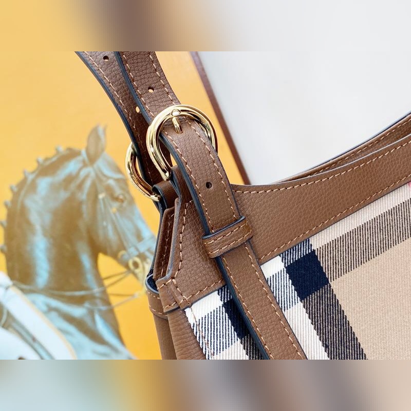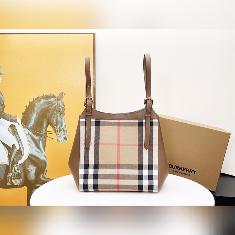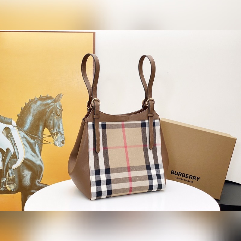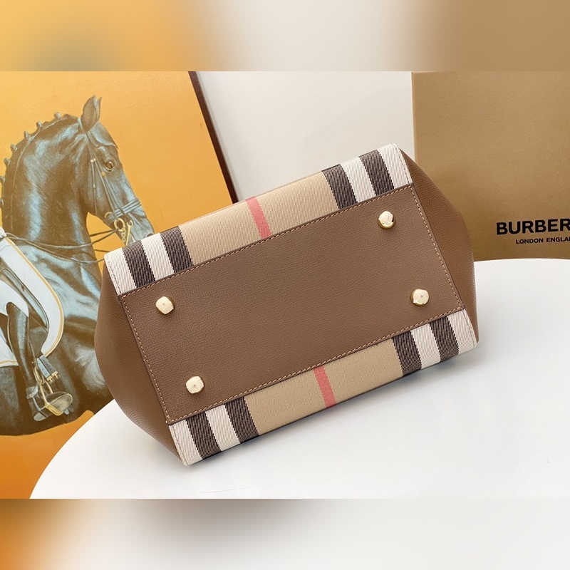 버버리 그레인 가죽 토트백 하우스 체크 코튼 트윌 사이드 패널 자석식