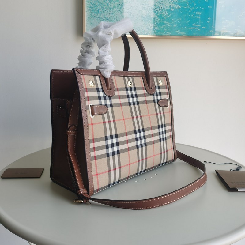 버버리 라지 델리케이트 타이틀 - 테이어 핸드백 빈티지 체크 패브릭 부