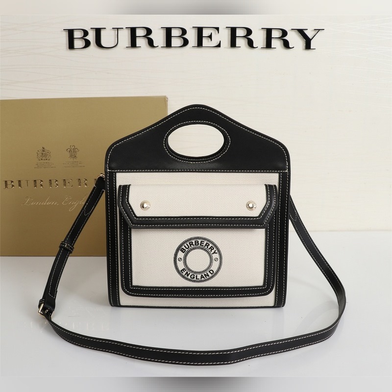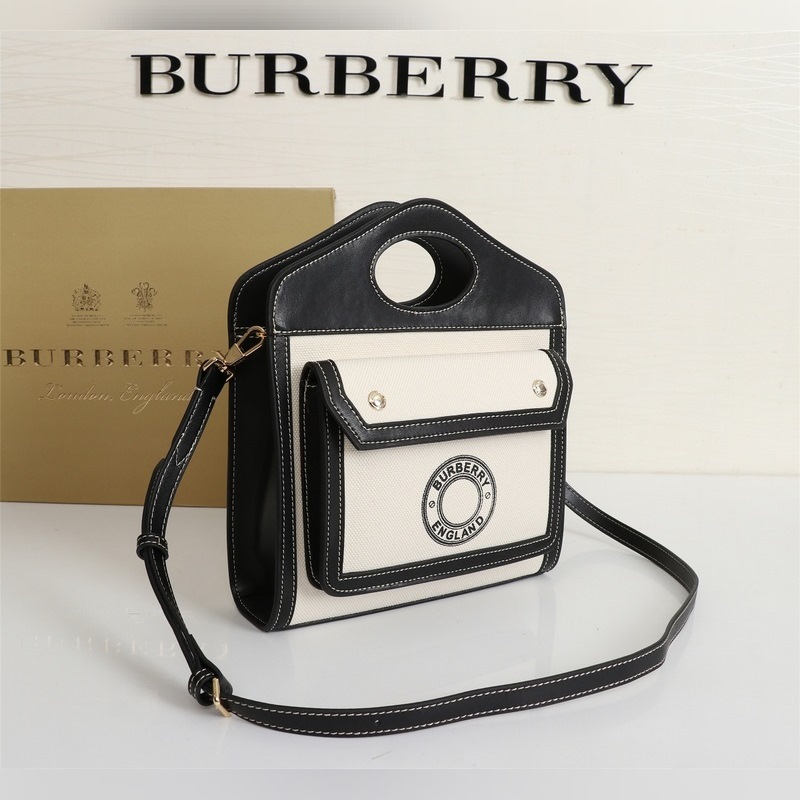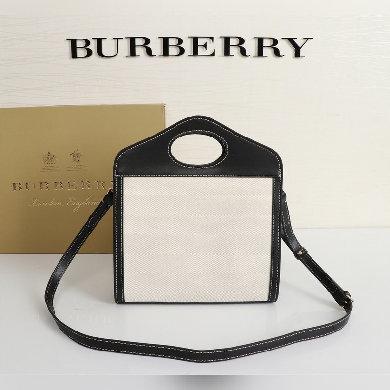 버버리 아카이브 토트백 대조적인 톱스티치와 가죽 디테일이 돋보이는 투톤