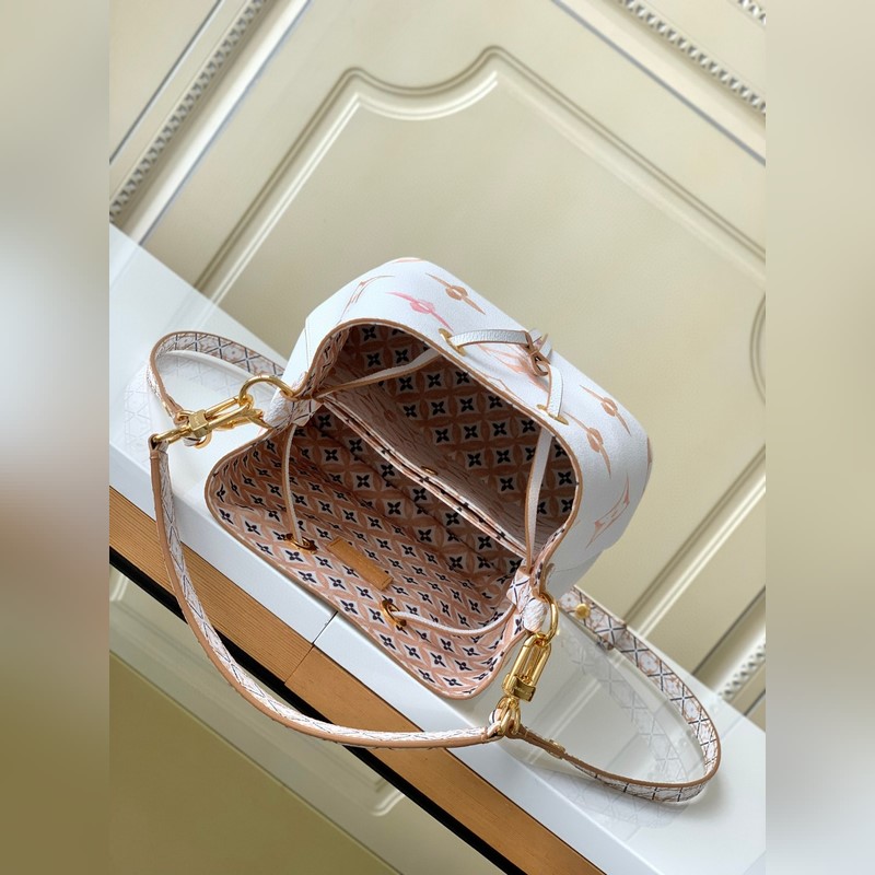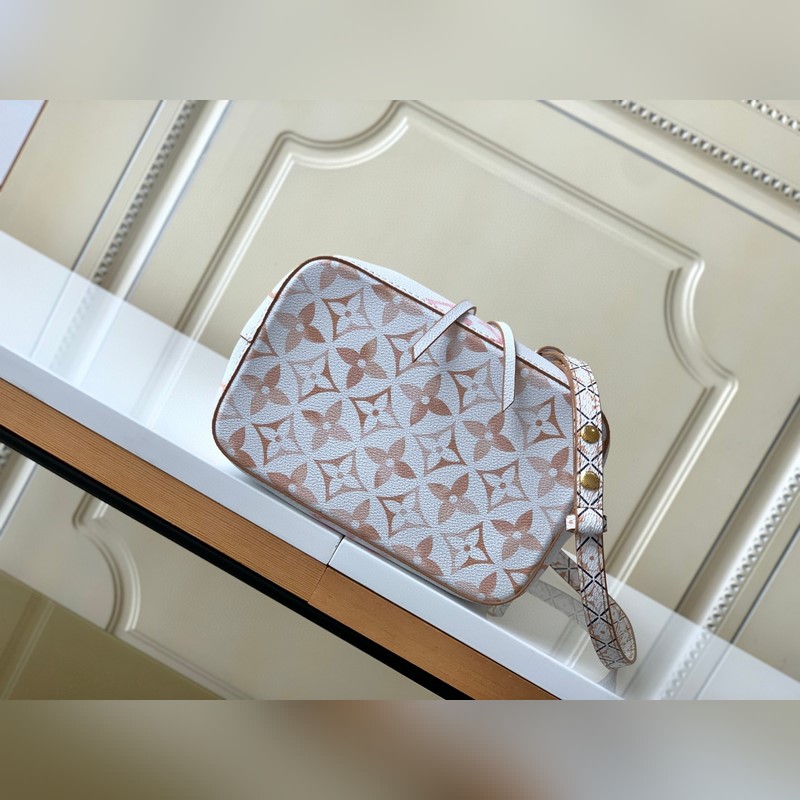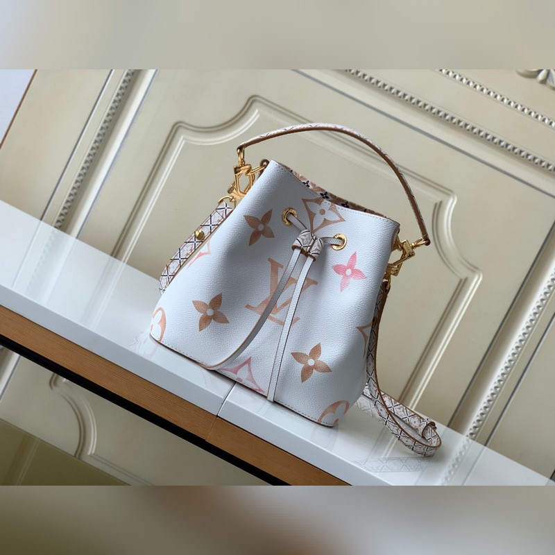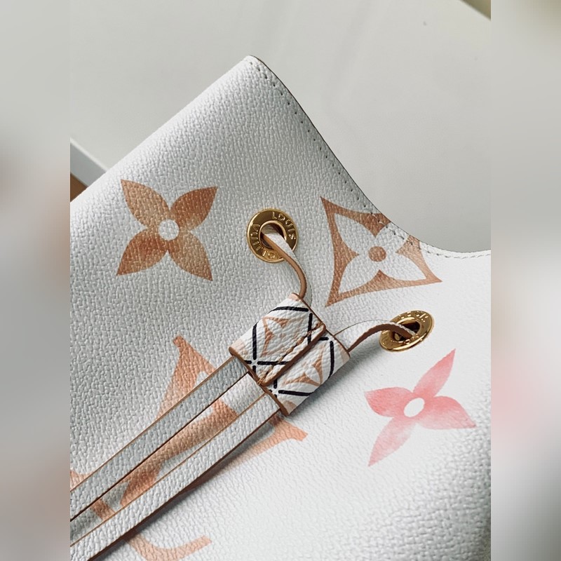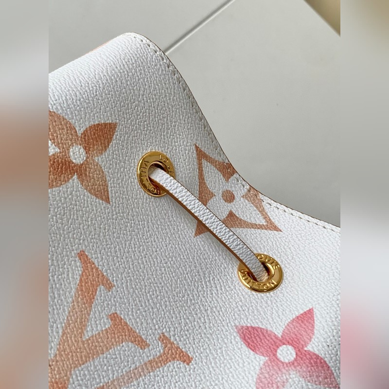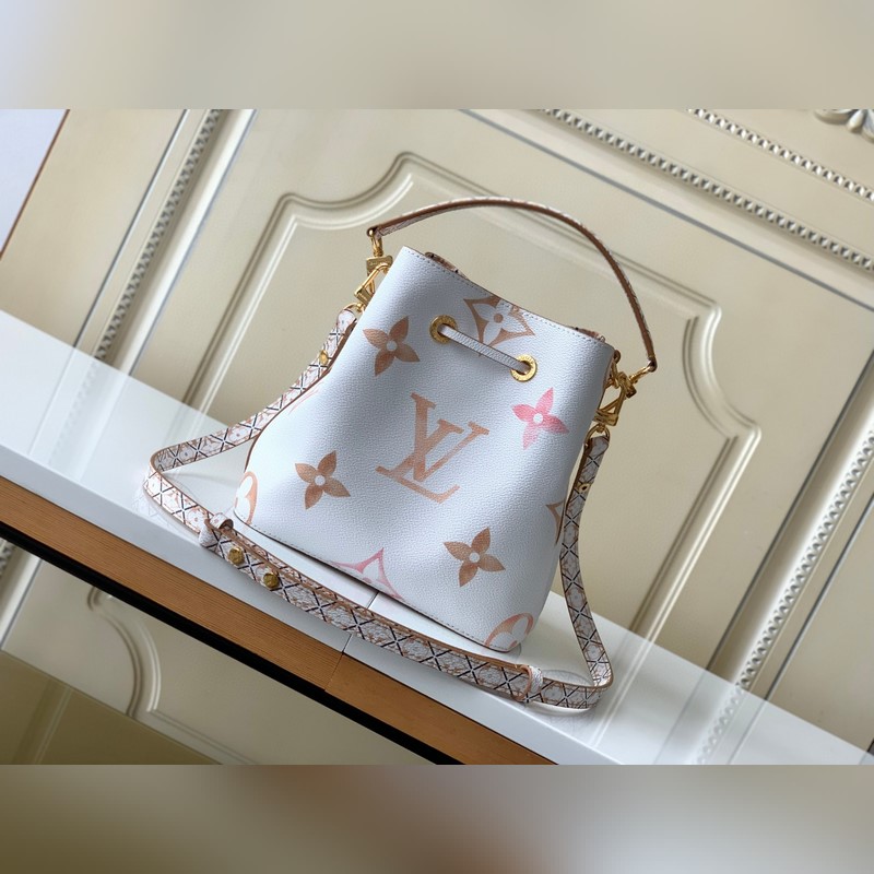 [하이위안 씨의 아웃도어 싱글 슈트의 독점 리얼 샷] M22986 블루 M22985 살구 이 네오노 버킷백은 밝은 캔버스에 자이언트 모노그램 프린트가 특징이며 LV와 모노그램 꽃이 수채화 물감의 다양한 색조로 표현되어 있습니다. 드로스트링과 중앙 스냅 버튼 내부 포켓이 있어 편안한 휴가 분위기를 자아냅니다. 상세 치수: 20x20x13cm