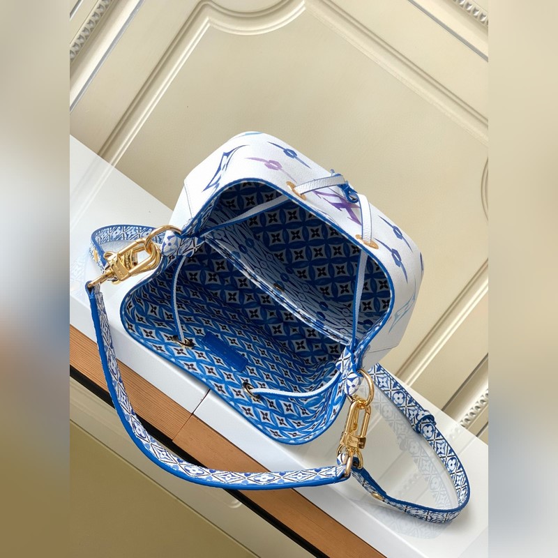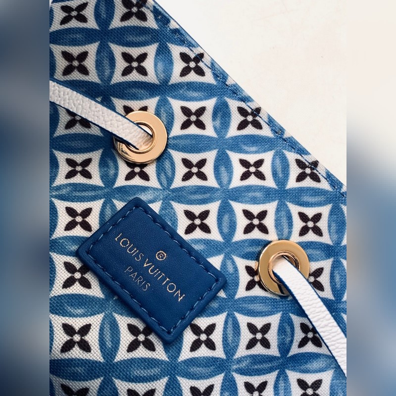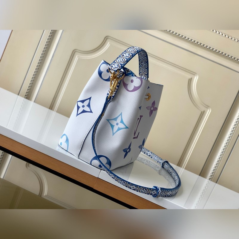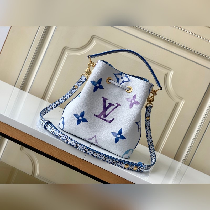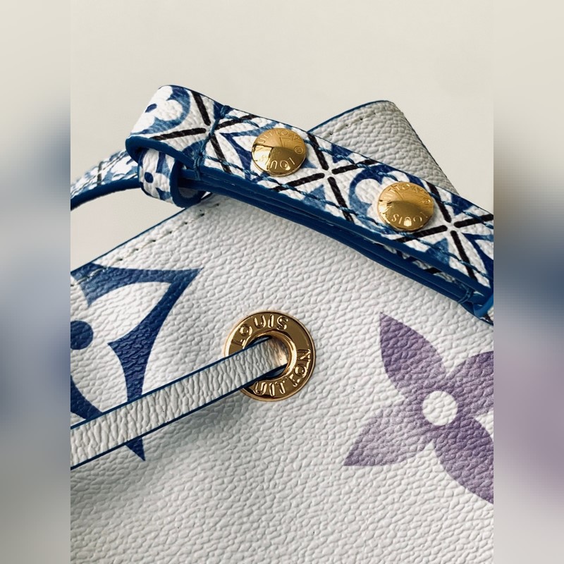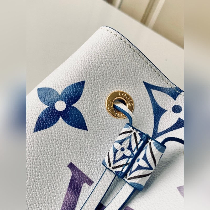 [하이위안 씨의 아웃도어 싱글 슈트의 독점 리얼 샷] M22986 블루 M22985 살구 이 네오노 버킷백은 밝은 캔버스에 자이언트 모노그램 프린트가 특징이며 LV와 모노그램 꽃이 수채화 물감의 다양한 색조로 표현되어 있습니다. 드로스트링과 중앙 스냅 버튼 내부 포켓이 있어 편안한 휴가 분위기를 자아냅니다. 상세 치수: 20x20x13cm