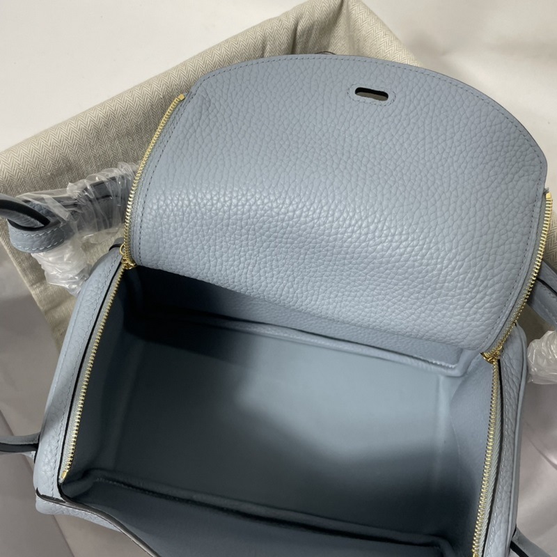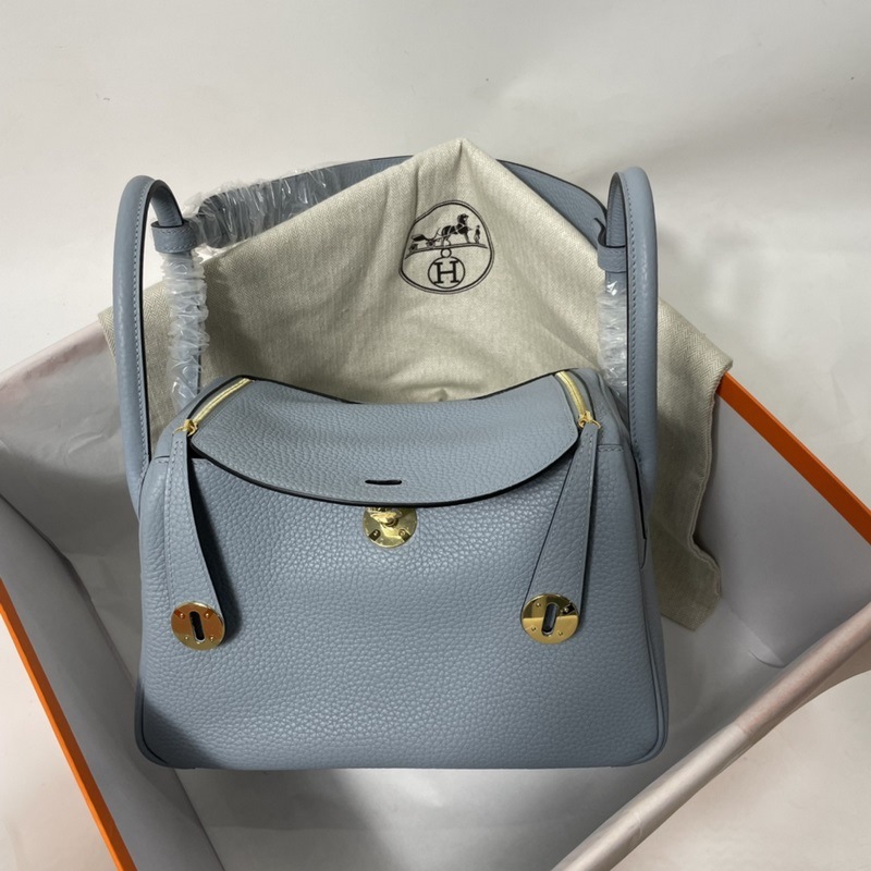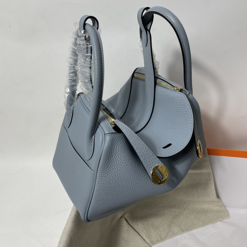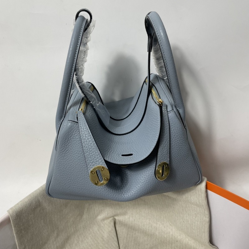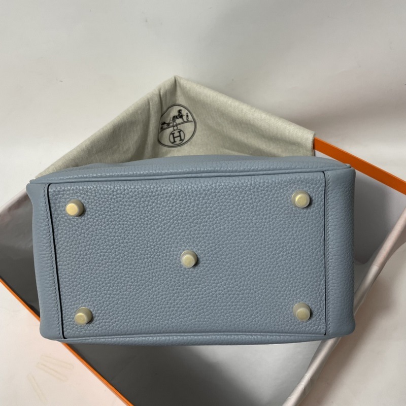 Herm?s 수입 TC 소가죽 토트백 리넨 블루에 금색과 은색 단추