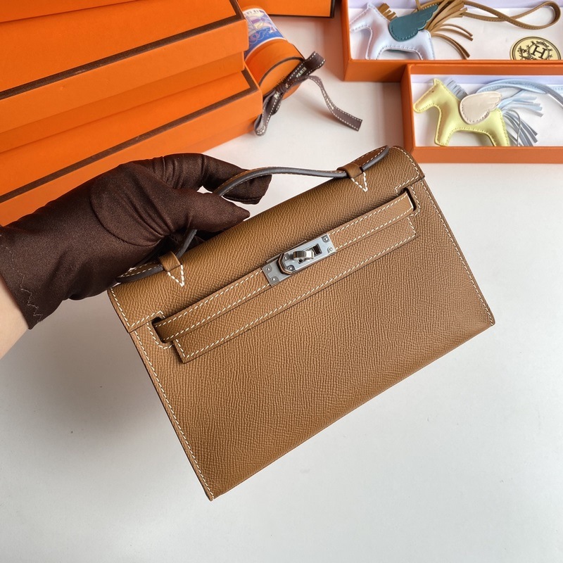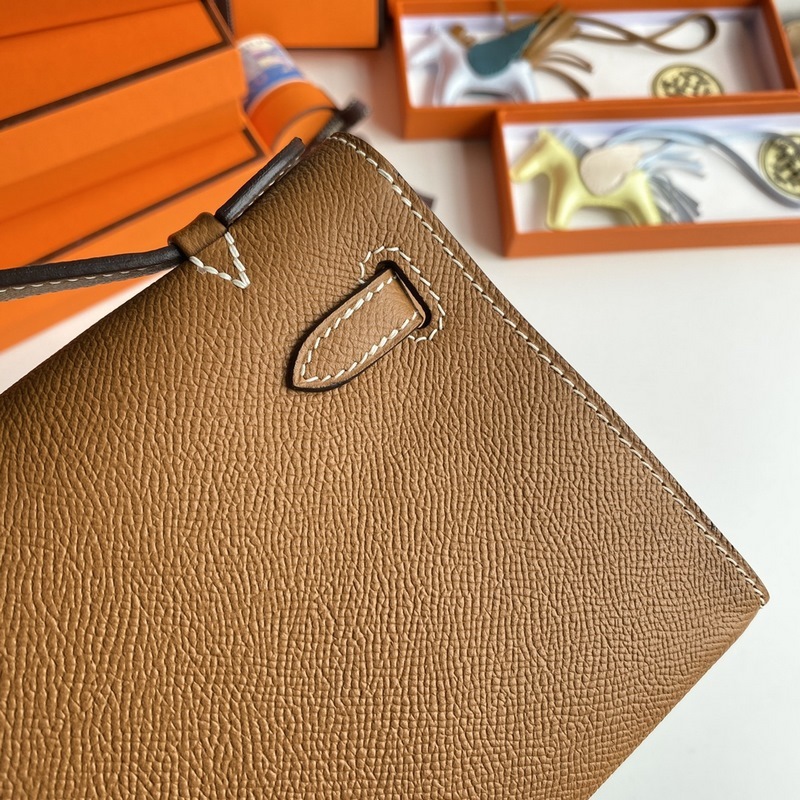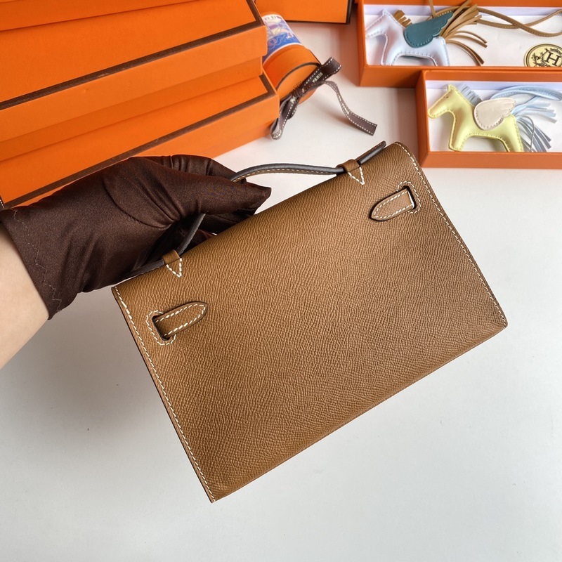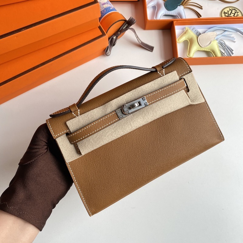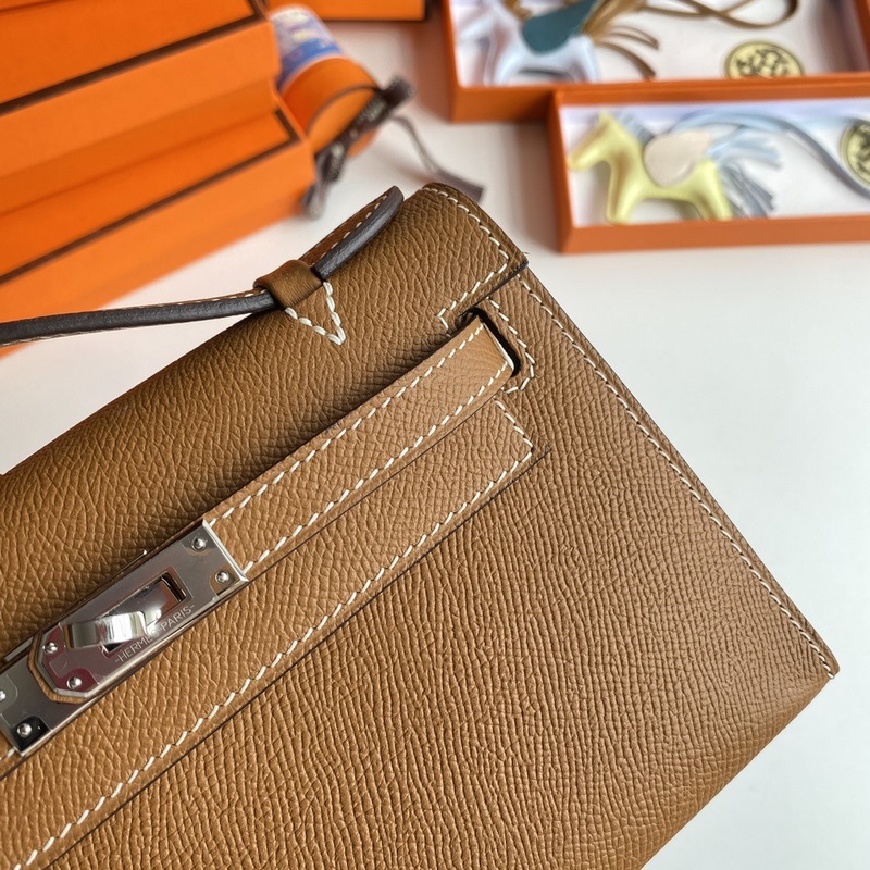 에르메스 미니 켈리 파첼트 핸드백 에프솜 가죽 골든 브라운 실버 버클 크