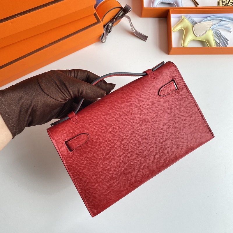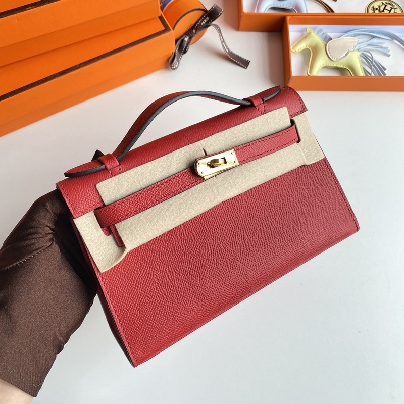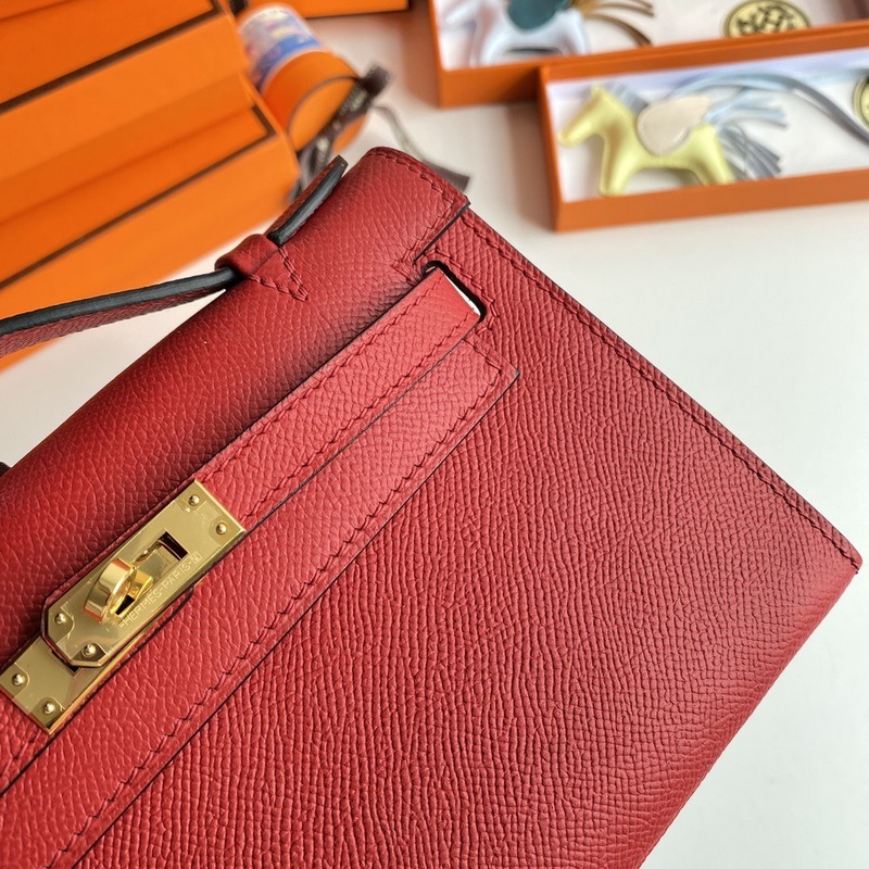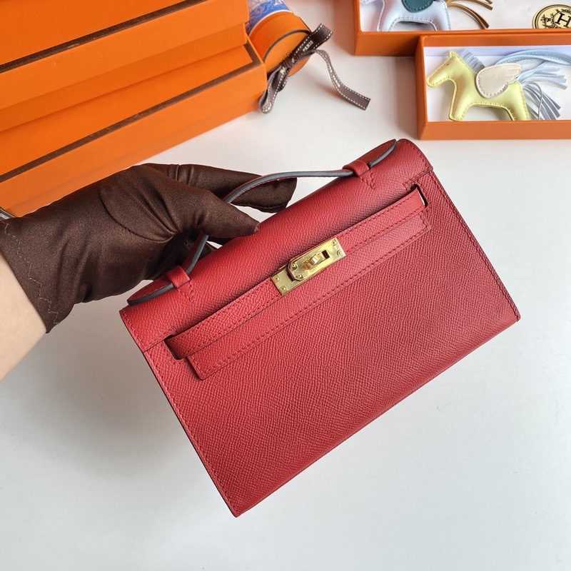 에르메스 미니 켈리 파첼 토트 에프솜 가죽 중국 빨강 금색 하드웨어 크기