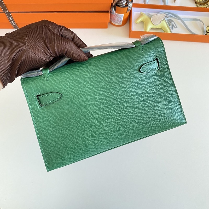 에르메스 미니 켈리 파첼 토트 에프솜 가죽 피콕 그린 골드 하드웨어 크기