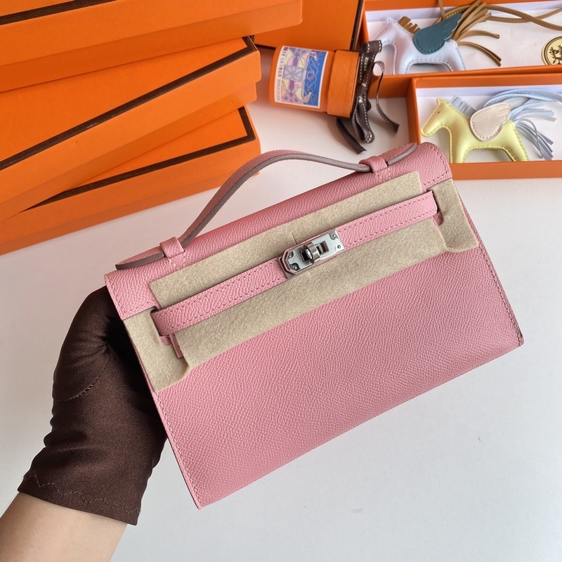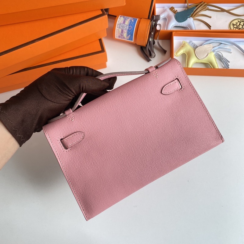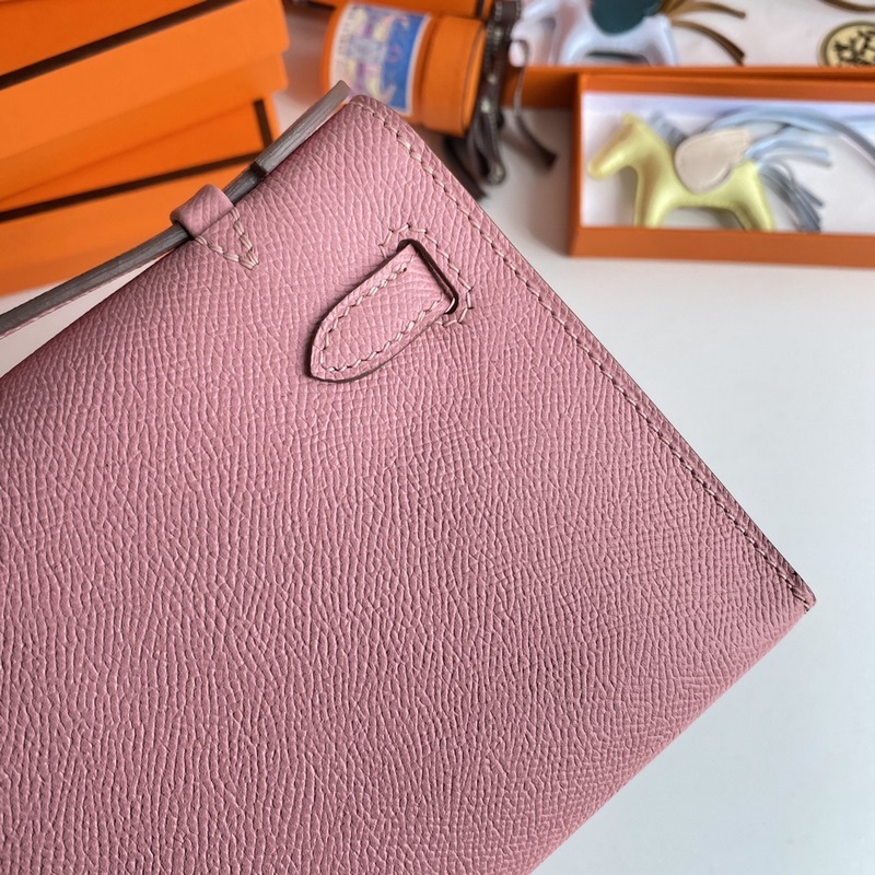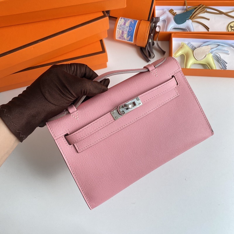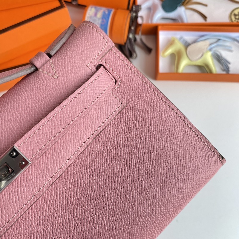 에르메스 미니 켈리 파우치 토트 에프솜 가죽 밀크쉐이크 핑크 실버 버클