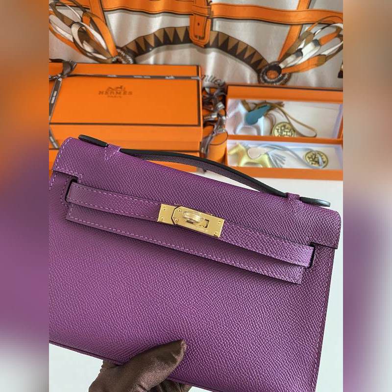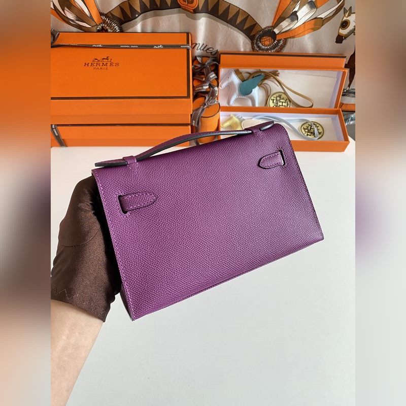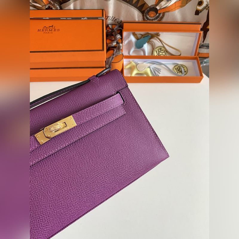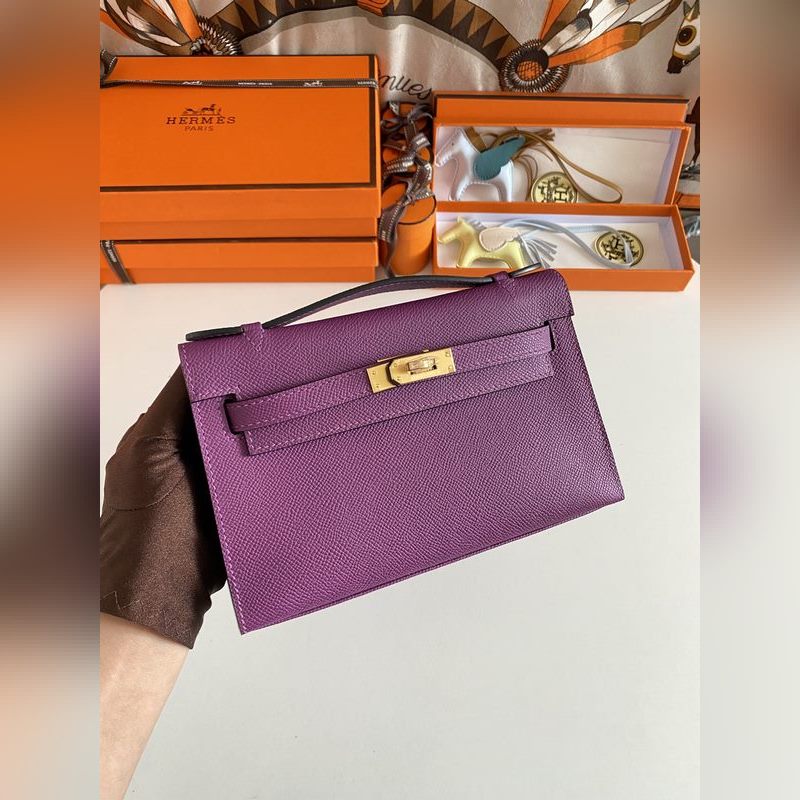 에르메스 미니 켈리 파우치 핸드백 에프솜 가죽 핑크 골드 버클 크기 22