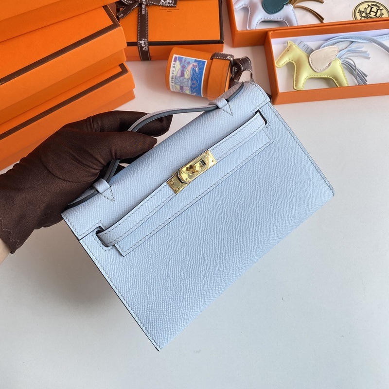 에르메스 미니 켈리 파첼 토트 에프솜 가죽 T0 스모그 블루 골드 하드웨