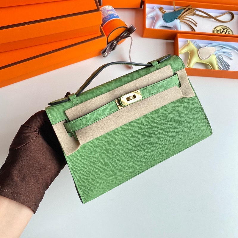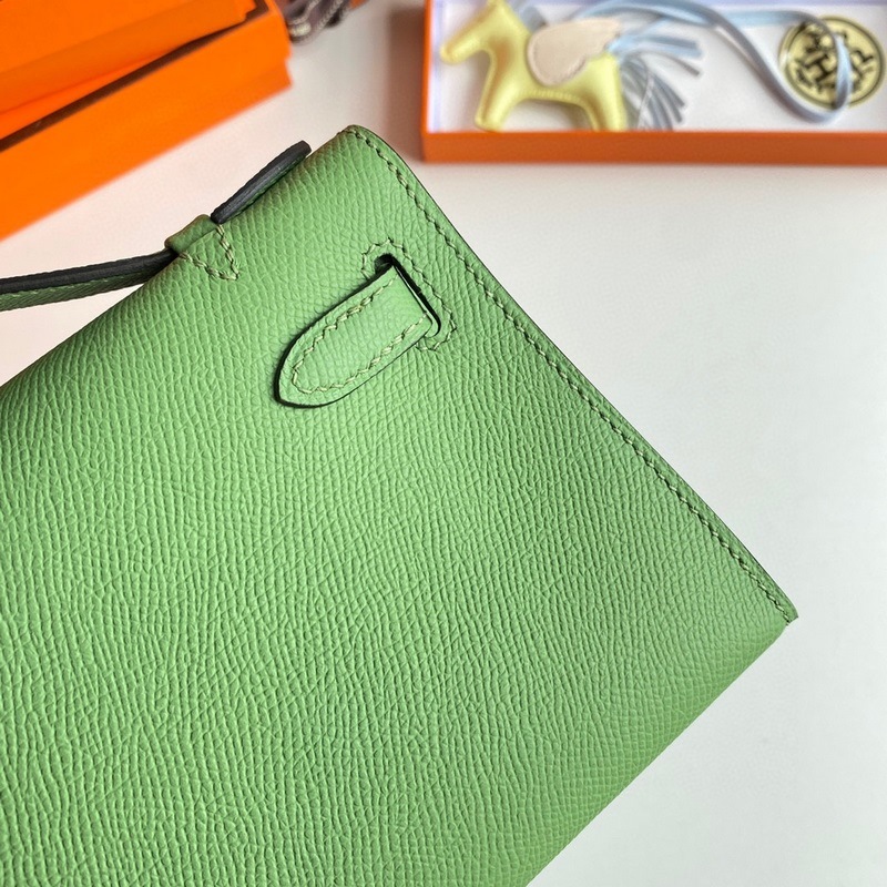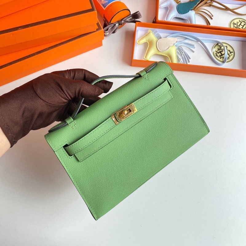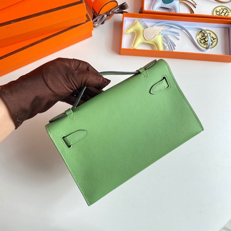 에르메스 미니 켈리 파우치 토트백 에프솜 가죽 아보카도 그린 골드 하드웨