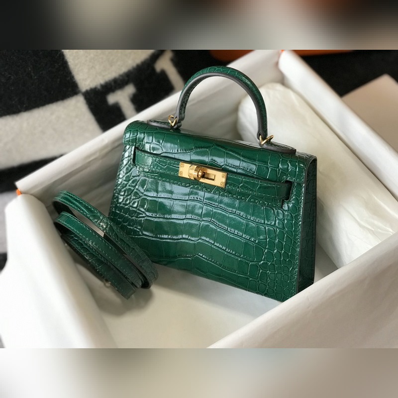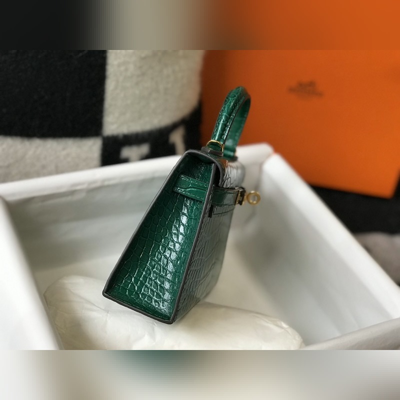 에르메스 모조 악어 핸드백 수입 엠보싱 소가죽 녹색 금색 버클 크