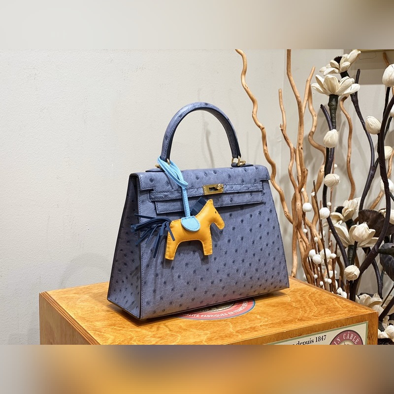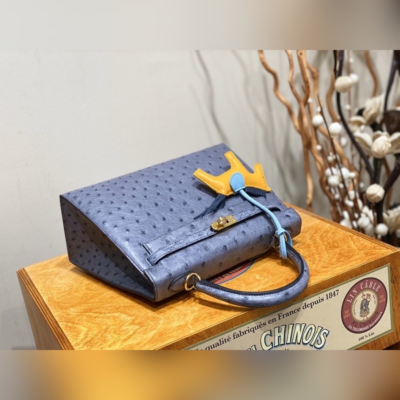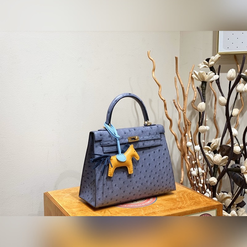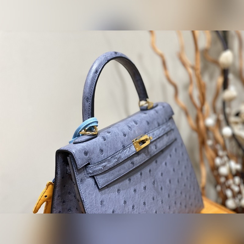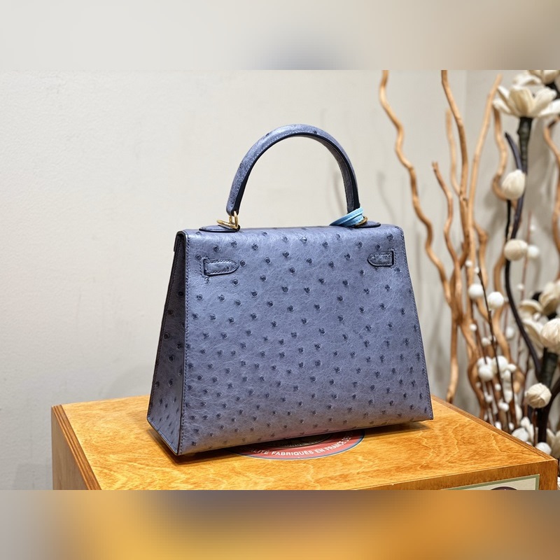 에르메스 켈리 백 타조 가죽 마노 블루 골드 하드웨어 25cm