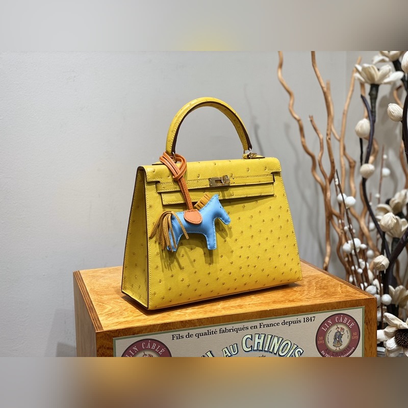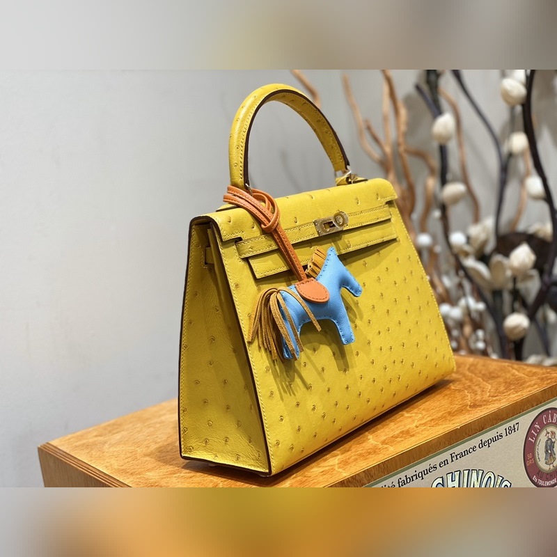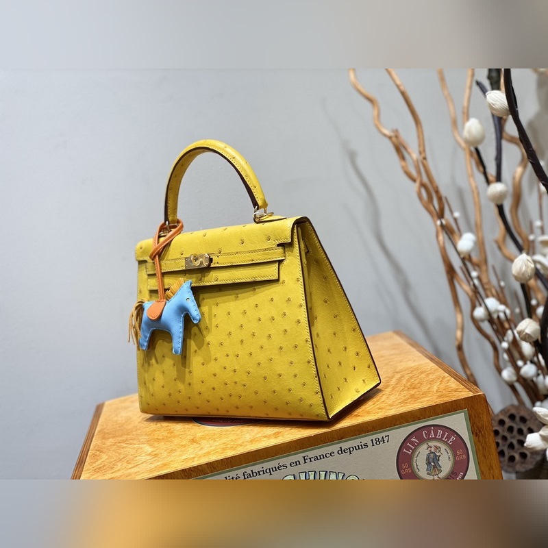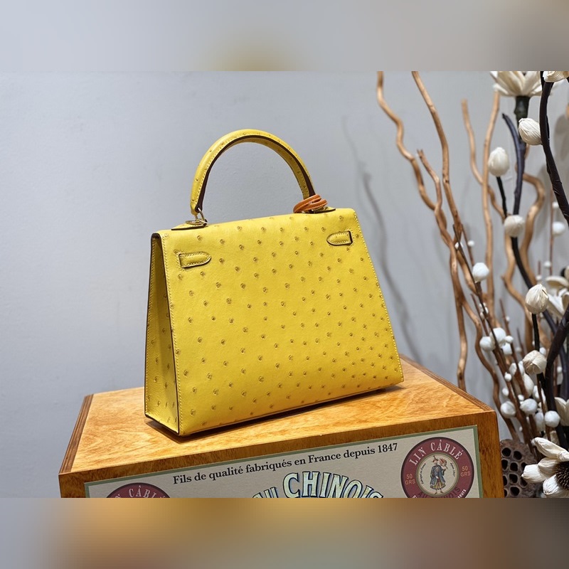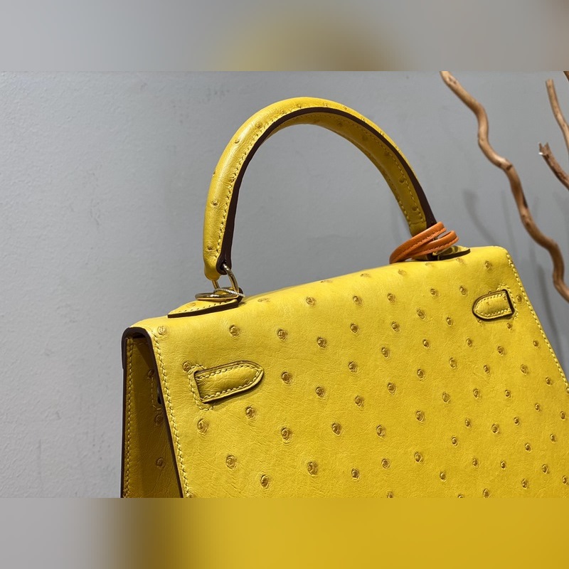 에르메스 켈리 핸드백 남아프리카산 타조 앰버 옐로우 골드 버클 사이즈 2