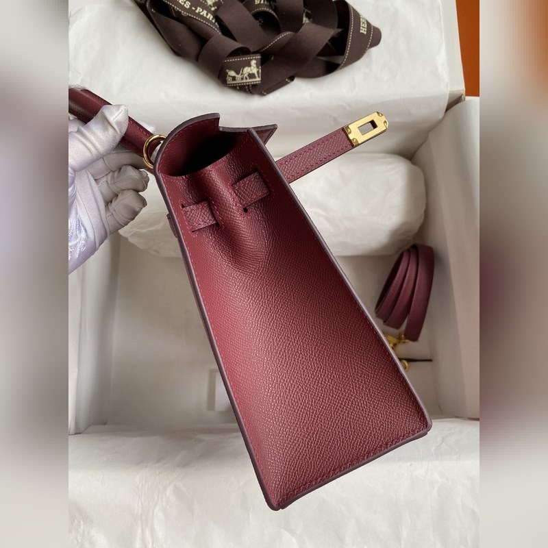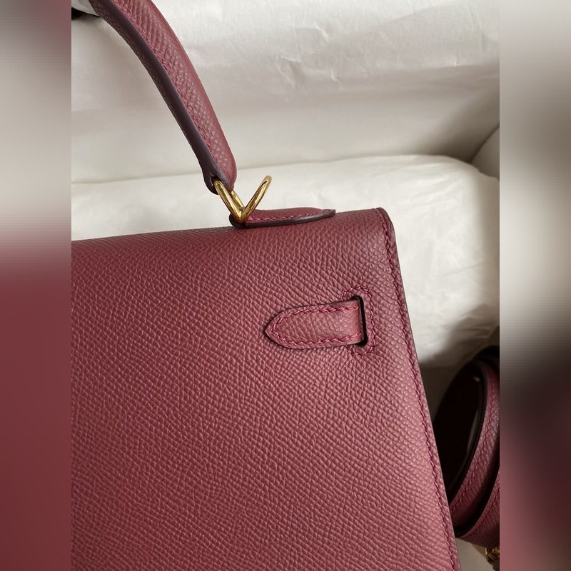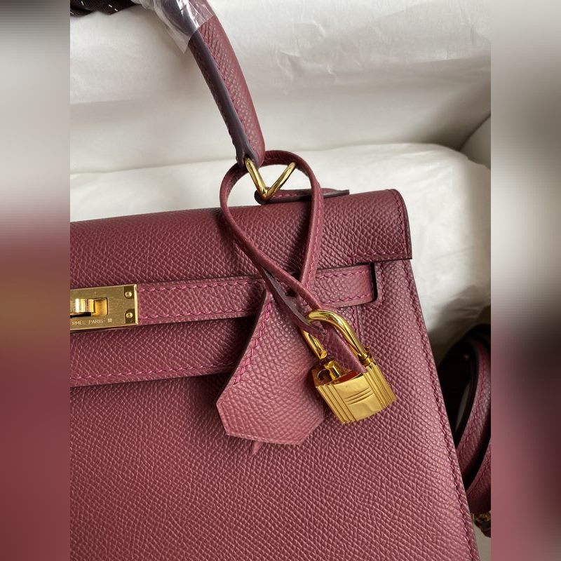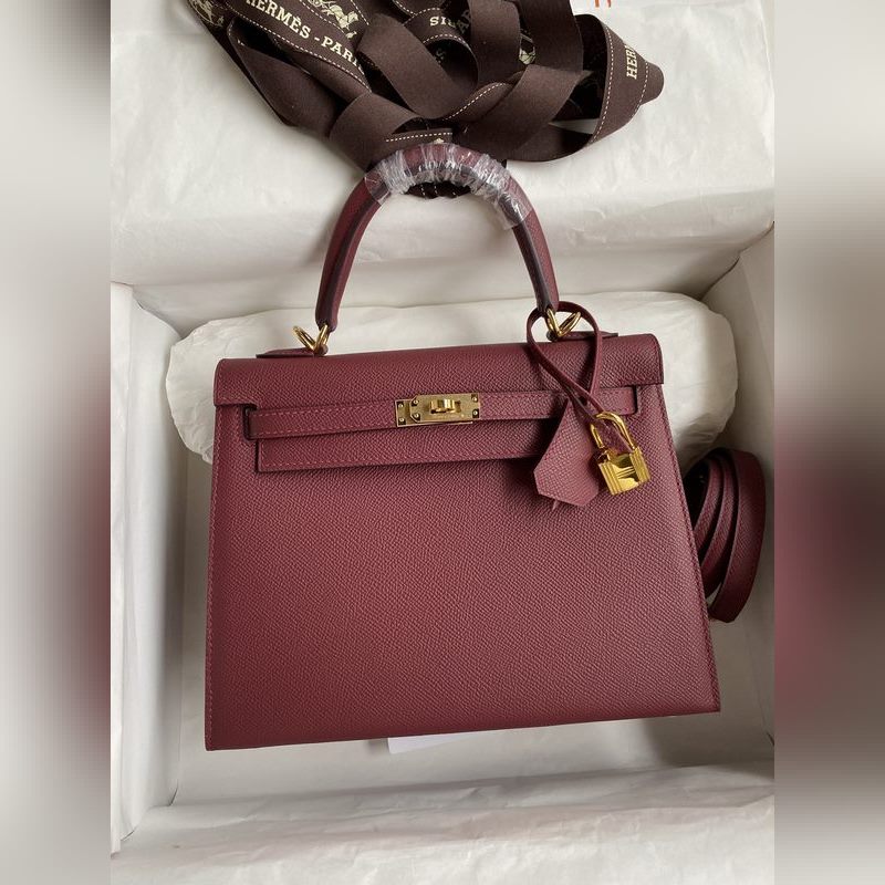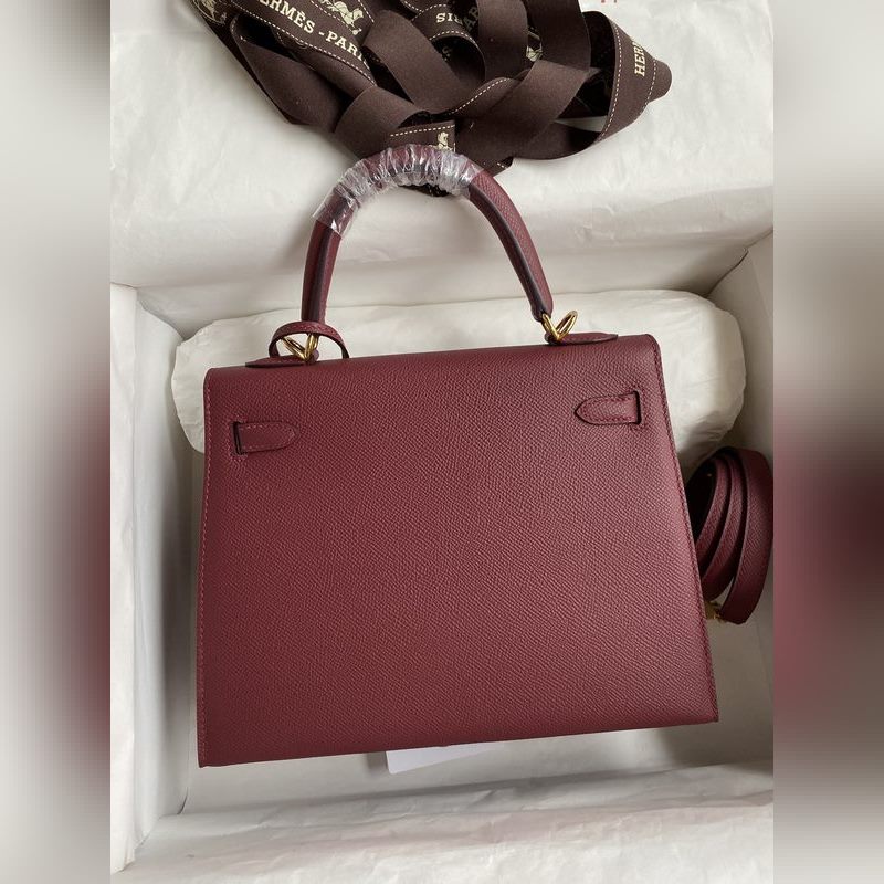 에르메스 켈리 백 엡솜 가죽 왁스 처리된 솔기 보르도 레드 금색