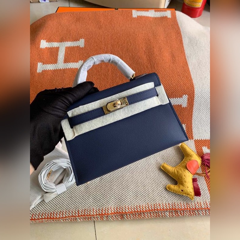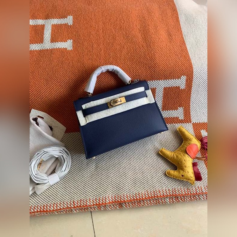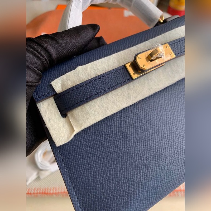 에르메스 켈리 2.55 미니 핸드백 수입 에프솜 가죽 다크 블루에 금